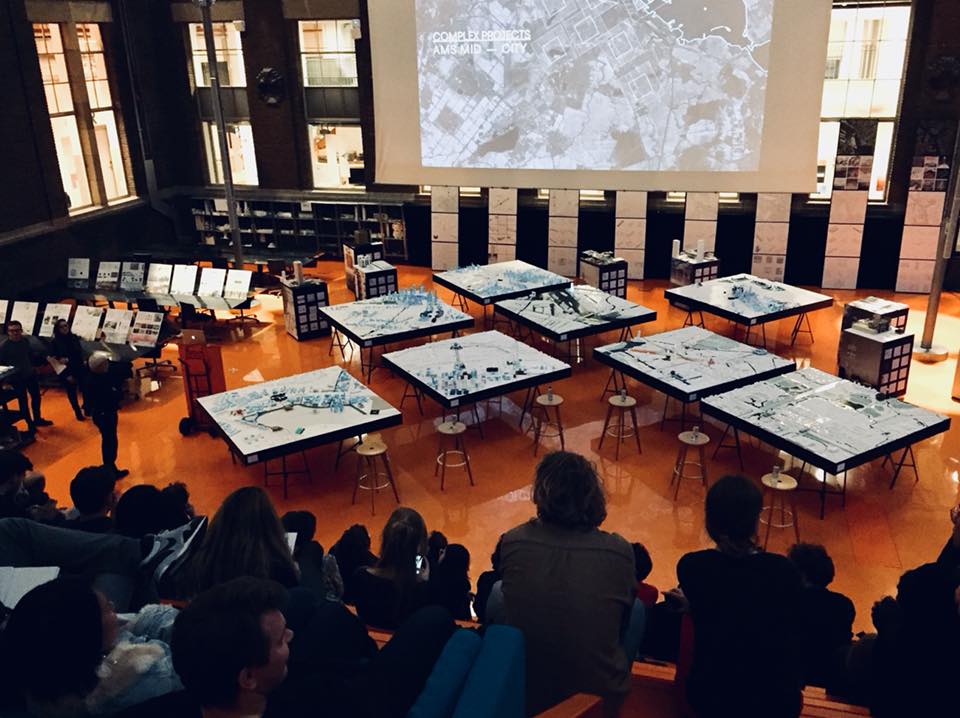 After a yearlong studio, a graduation show of the Complex Projects AMS Mid-City was held on 12 July 2018 in the Orange Hall of the TU Delft Faculty of Architecture.