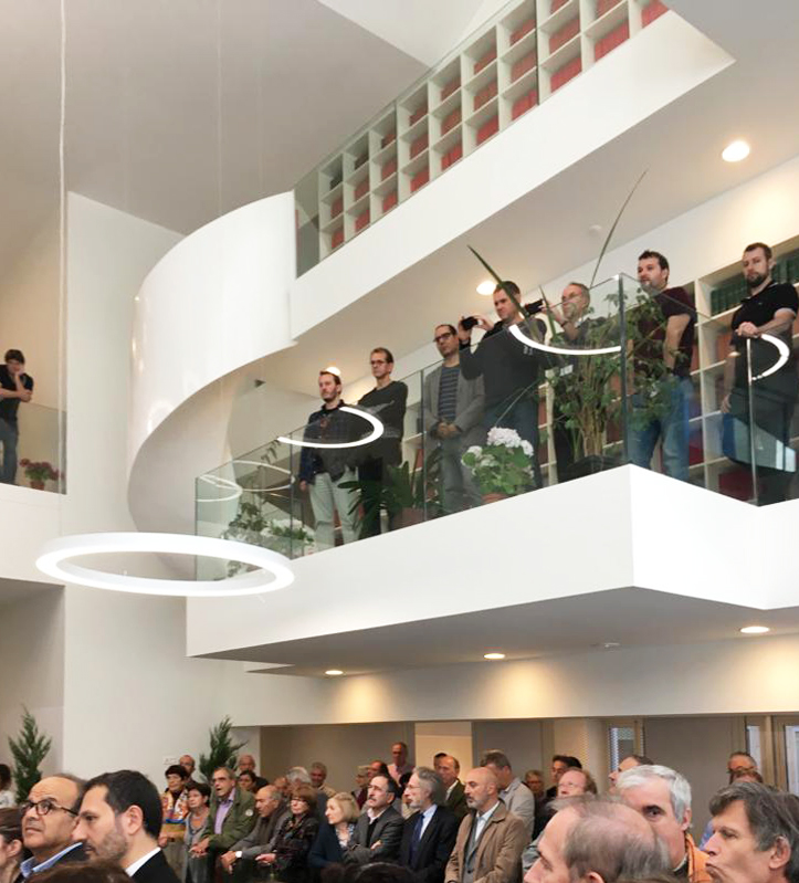 During the ceremony speeches were given by Sylvie Retailleau, President of Paris-Sud University, Antoine Petit, President and CEO of CNRS and Gilles Bloch, President of Université Paris-Saclay, and the architects from KAAN Architecten (Kees Kaan) and FRES architects (Laurent Gravier + Sara Martin Camara).