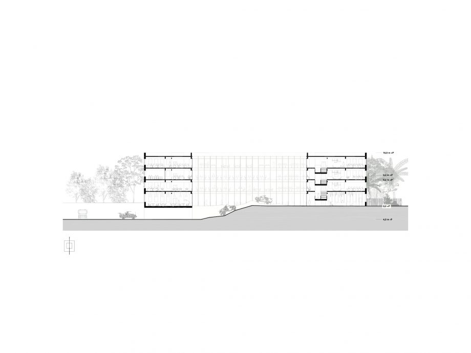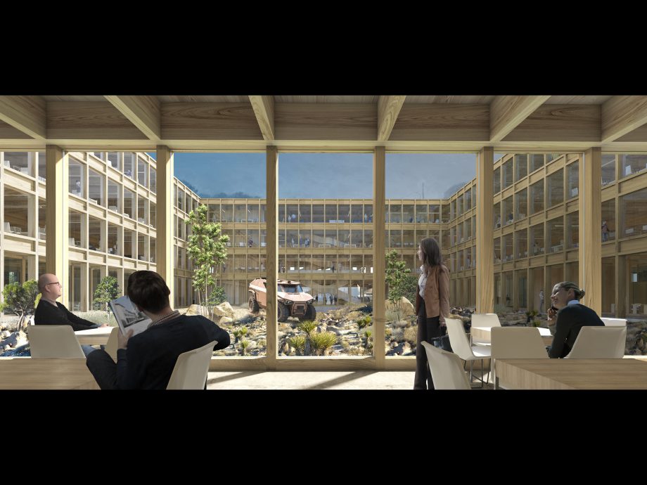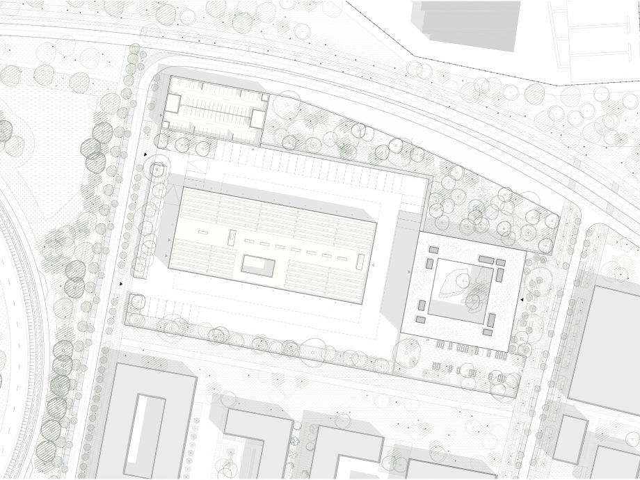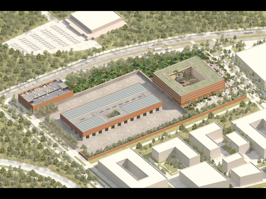 ARQUUS One site is a complex with facilities dedicated to production of military vehicles, located in an extraordinary urban and landscaped environment in Versailles, France. The project for the new Satory district appropriates this context and forges links with history and the territory by creating a common landscape, a hierarchical network of public, natural and built spaces. The ensemble of 3 buildings includes an office building, a central workshop facility and a garage all connected by a common plinth that facilitates logistics. Both the office building and the workshop are housed within robust envelopes, but their interior disposition is agile and flexible in anticipating the constraints of use: movement of the staff and machinery, comfort and well-being at work.