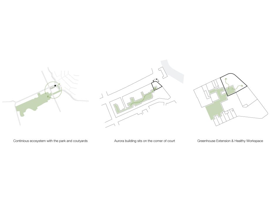 Aurora is designed for long-term sustainability, featuring innovative elements such as electric energy storage, a geothermal system, 214 solar panels, and climate-adaptive green roofs, blending heritage with cutting-edge sustainability.
