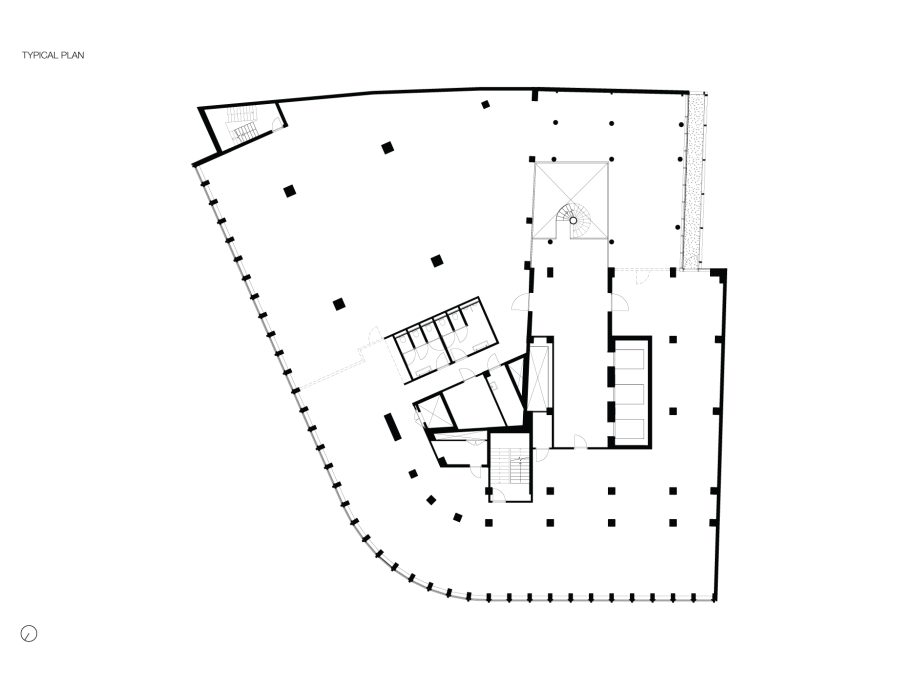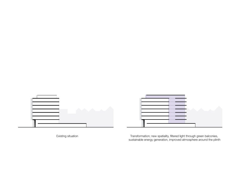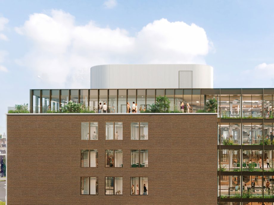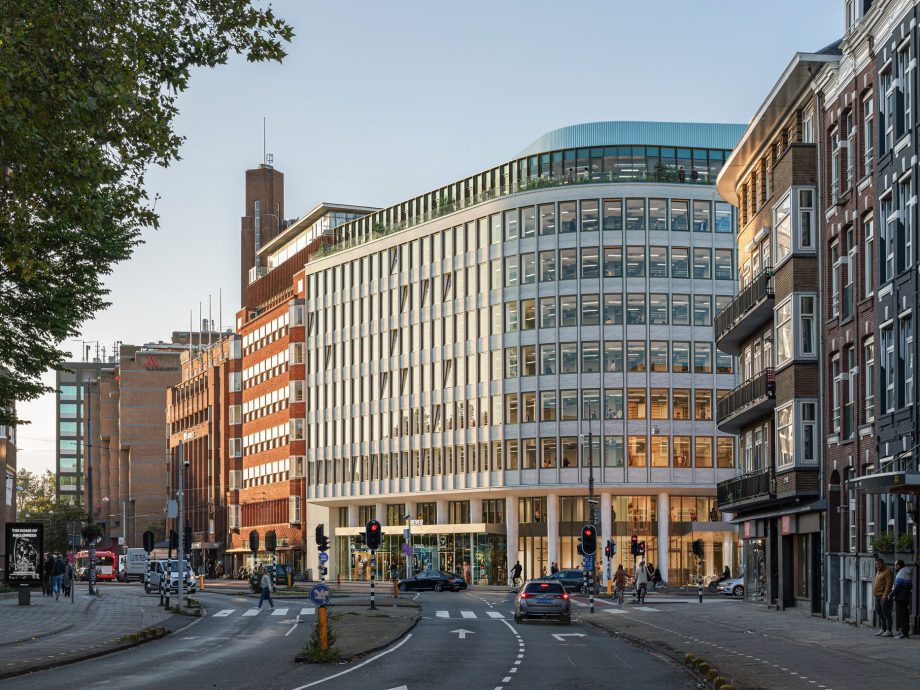 Designed in the 1960s by renowned architect Piet Zanstra, Aurora is a notable example of early modernism in the city, distinguished by its elegant curved façade that follows the natural bend of the street. The renovation respects the building’s architectural heritage, preserving key features such as its natural stone façade, columns, storefront volumes, and single-storey roof structure, which were recognised as monumentally valuable in 2022. At the same time, the project introduces innovative elements, including a green garden at ground level, a new atrium, and landscaped rooftop terraces, creating a healthy and engaging work environment. The flexible office floors of nearly 1,000m² offer spacious, well-insulated, and light-filled workspaces.