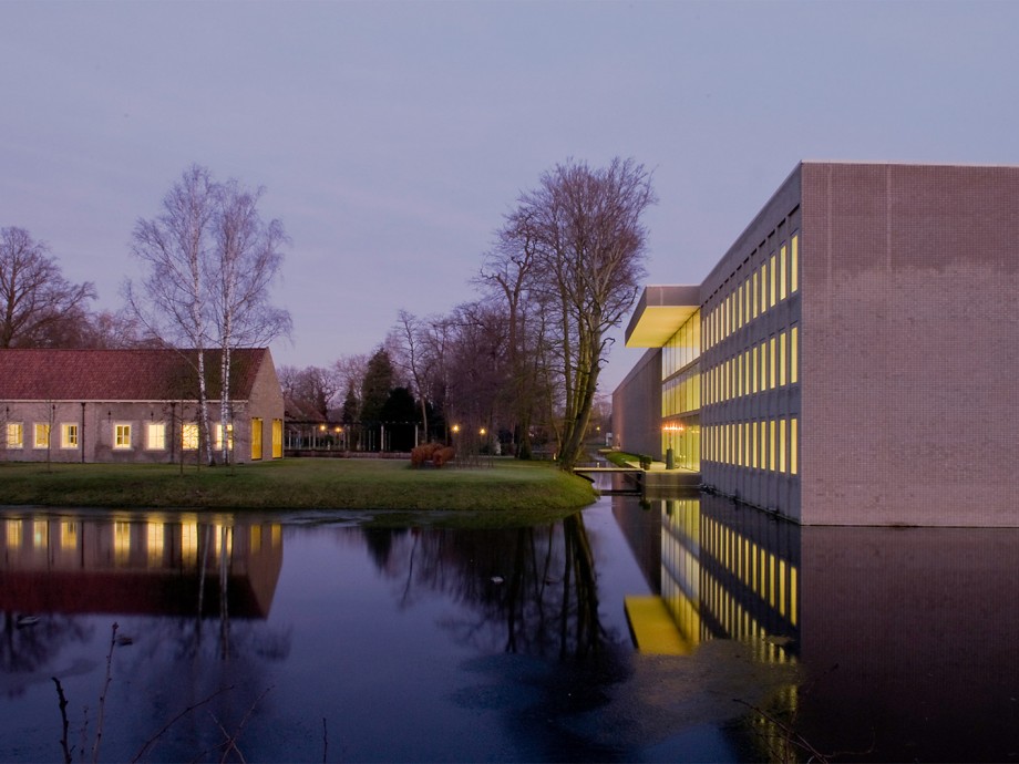 The project is a design where new and old meet in an ensemble of conservation and innovation. The Bouvigne estate with castle, chapel and gatehouse has been converted and enriched with an elegant and timeless office building. The new modular building inserts itself in a natural, appropriate and monumental way and divides the estate into two green spaces: an original and elegant French garden and a new orchard of walnut trees. An inviting entrance hall gives an open viewing axis towards the castle, following the line of the gatehouse. The layering of the depth of the façade and the locations and orientation of the offices are all designed for an optimal connection with the green surroundings. The sober and subtle detailing of the building defines the architecture. Flexibility, use of high-quality materials and sustainable interior features give shape to a comfortable and representative working environment. The building is functional and efficient. The practical work spaces in the meeting rooms and offices are neutral and user friendly. The castle is used as a conference centre, while the chapel houses the Water Board Council.
