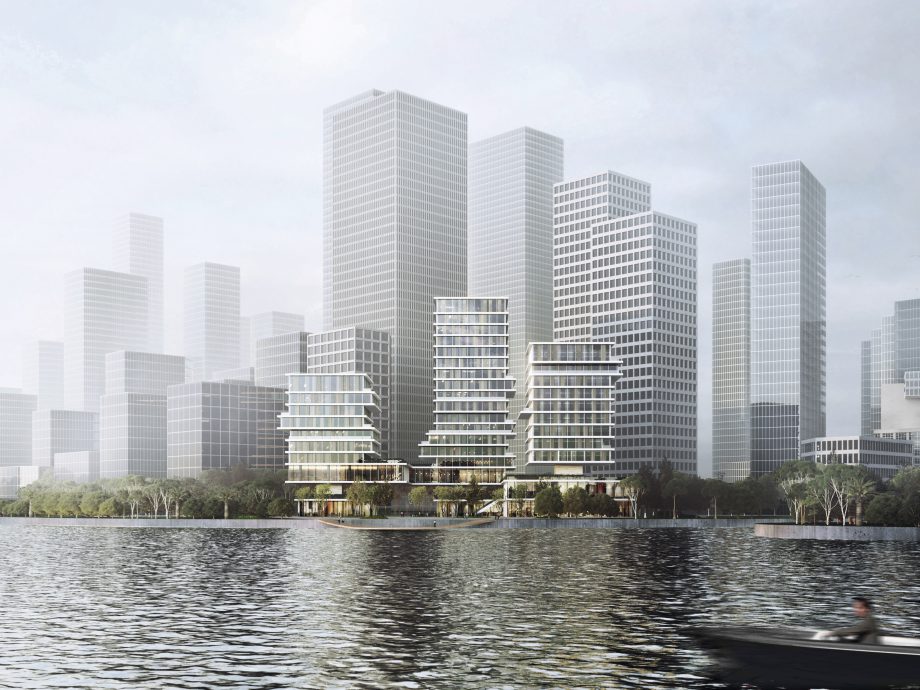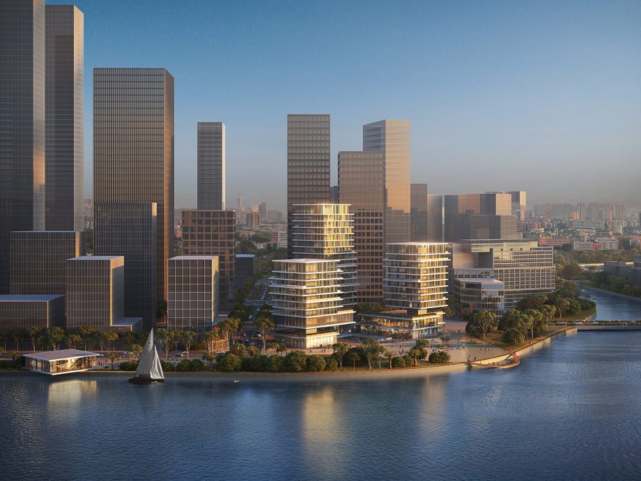 The project consists of three office towers, a commercial complex, and the landscape connecting to the river, and also houses the eponymous Camel apparel headquarters and flagship store. Positioned at the confluence point of the Huai and Zhujiang rivers, the project forms an urban icon along the waterfront welcoming the public into Guangzhou’s newest urban hub.