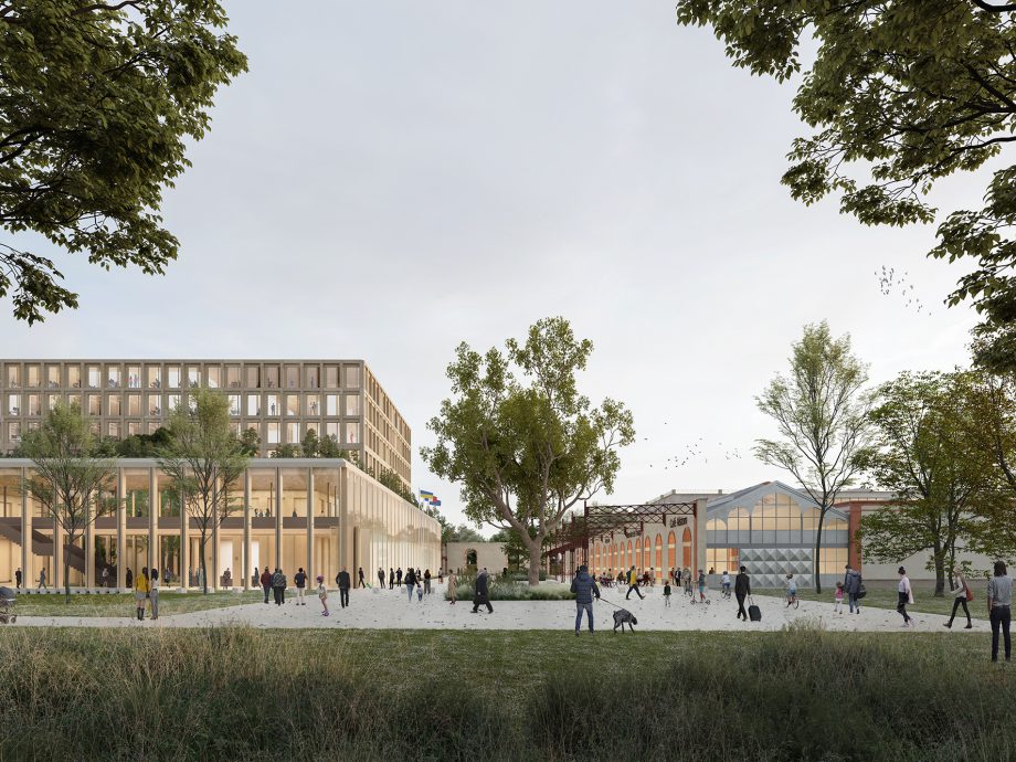 The Courthouse in Nancy brings together the penal, civic, social and trades courts on one site. Creating a singular hub for these legal entities aims to improve the conditions for welcoming the public and the functioning of all courts. The design ensures a high-quality urban interpolation that highlights the remarkable industrial heritage of the site. Located on the site of the former Alstom factory in the northeast of Nancy’s historic core, the new judicial complex marks the first stage of the transformation of this historically industrial area into an up-and-coming ecological district. The project restores the architectural and spatial integrity of the former assembly hall, transforming it into various interconnected spaces. Facades and most portico frames are preserved and dialogue with the project’s different parts: the new judicial building and its logistics spaces, the forecourt, and a dense forest. The greenery is omnipresent and seeps into the building through a large patio, contributing to the image of serene and welcoming justice.