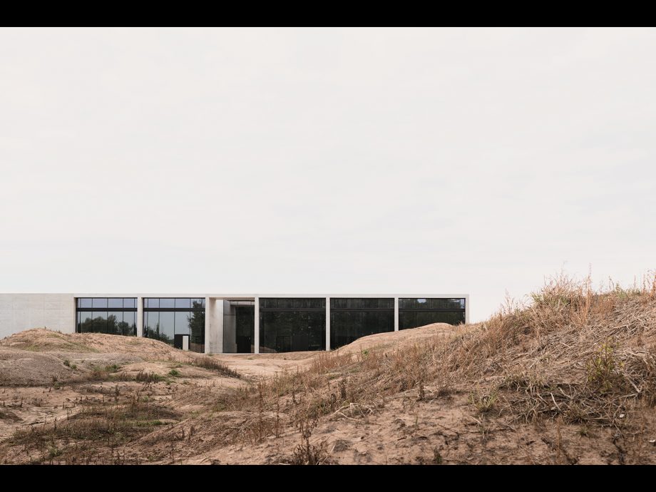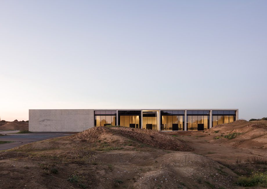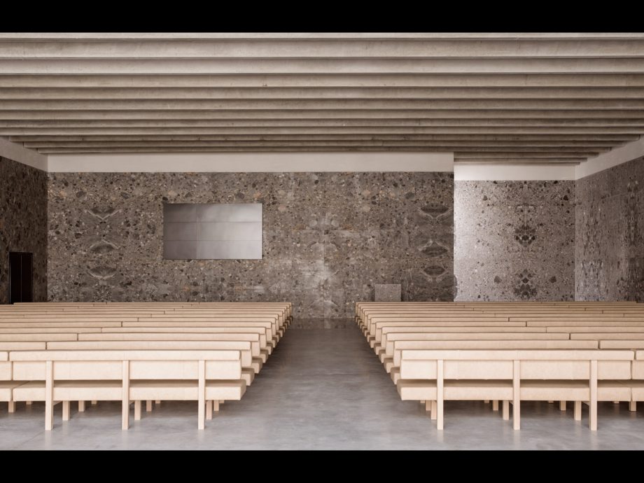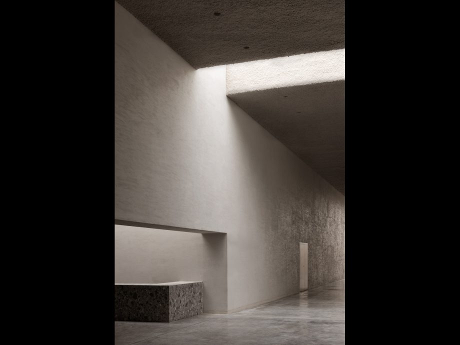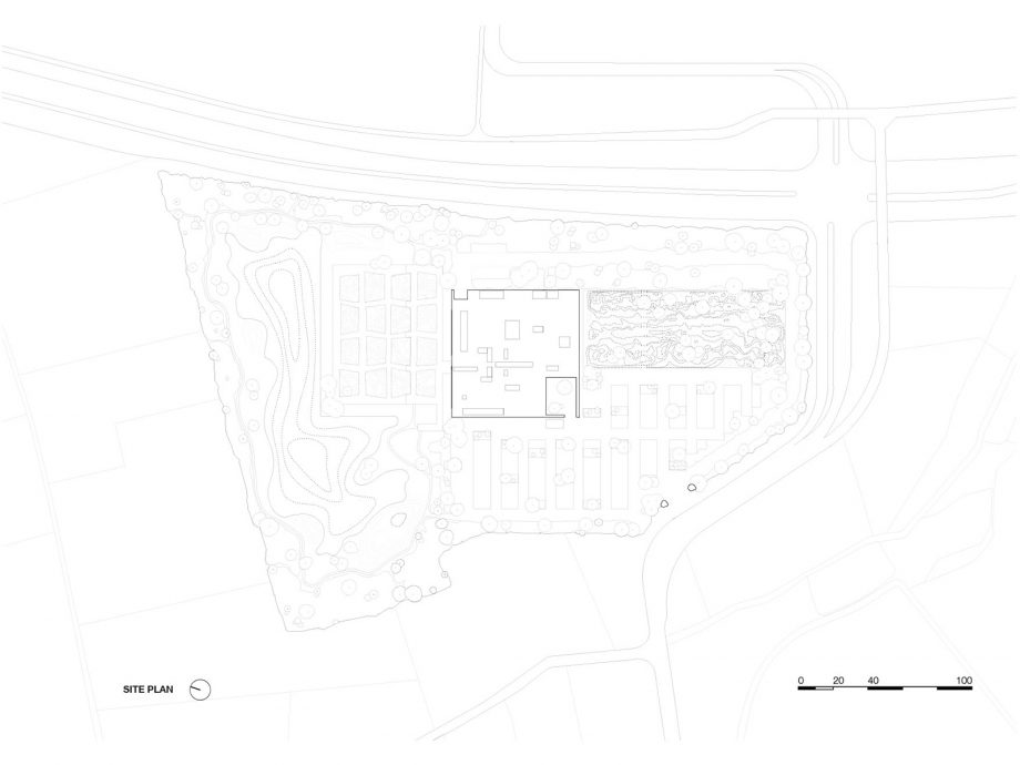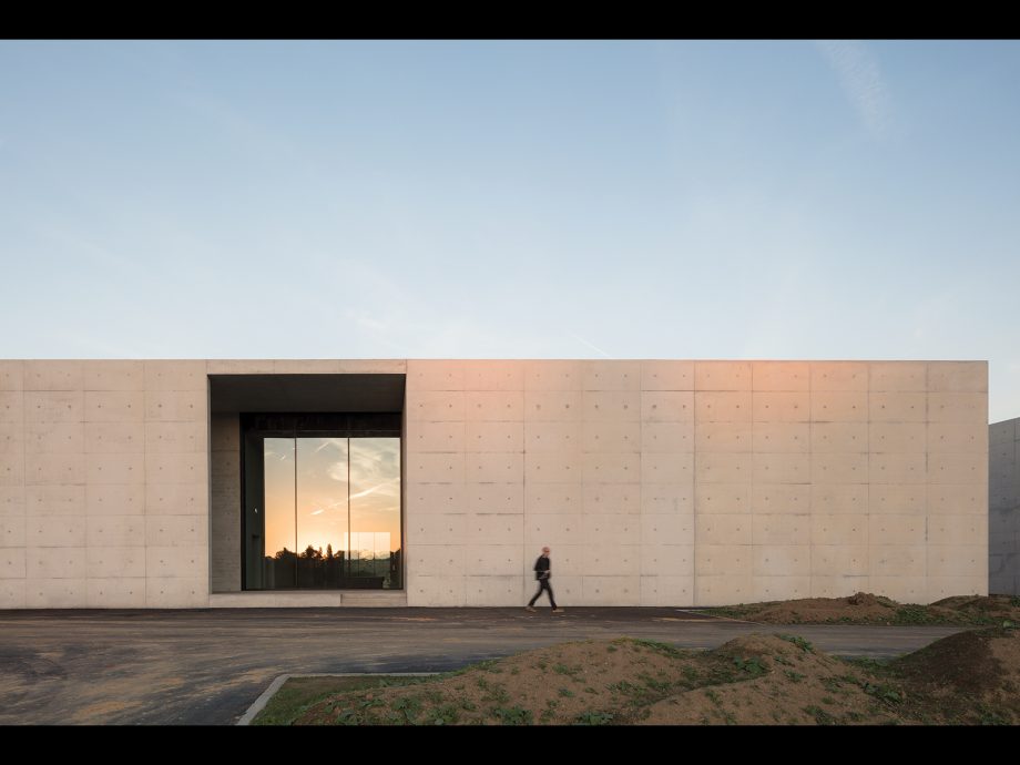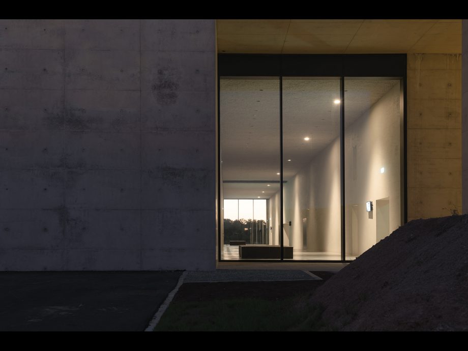Crematorium Siesegem is located in the countryside just outside of Aalst, Belgium. Trees and shrubs line the perimeter of the plot while the crematorium is situated in the middle, with a footprint of 74 by 74 meters. The surrounding greenery is envisioned as an extension of the crematorium space and is an important part of the funeral ceremony. The south-western corner of the building opens onto a patio and serves as a transitional zone, welcoming visitors and pulling them inwards. Once inside, a clear sequence of spaces unfolds so the visitors never feel lost, with architecture offering spatial guidance. The crematorium encompasses two ceremonial assembly halls each flanked by a family room and a place for condolences opening towards an outdoor area. The goal was to design a building capable of internalizing the landscape so that its tranquility could console visitors and provide strength. Therefore, interior spaces are strategically oriented within the landscape to create enclosed patios blurring the distinction between interior and exterior. Next to the ceremony spaces, the technical aspects of the building are also a fundamental part of the design. The cremation process is disclosed rather than hidden, creating an unusual yet effective polarity between the mechanics and the serenity.