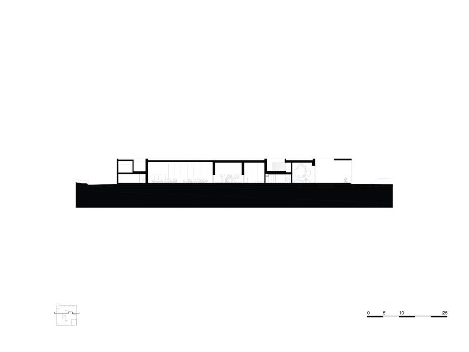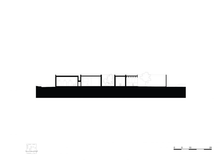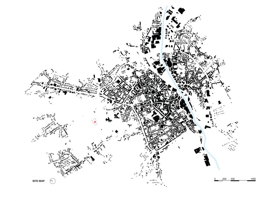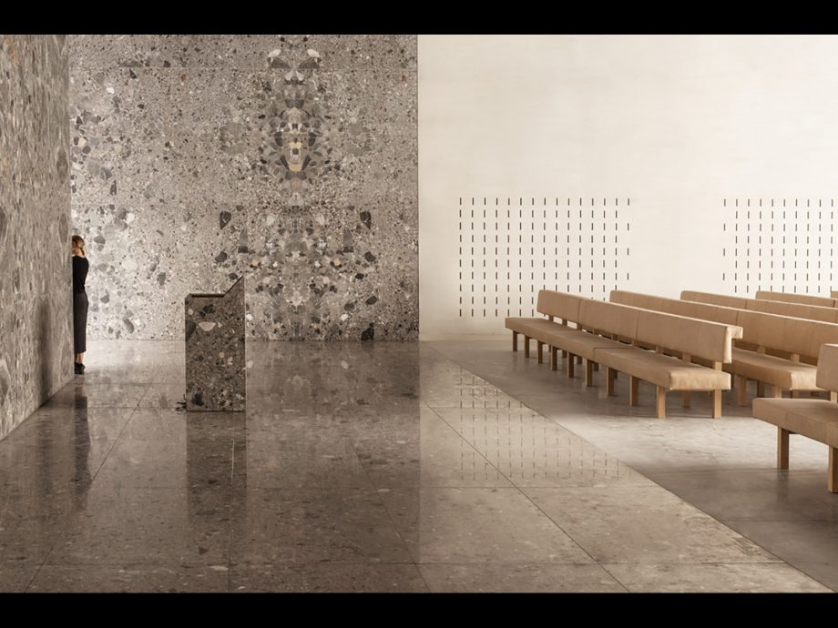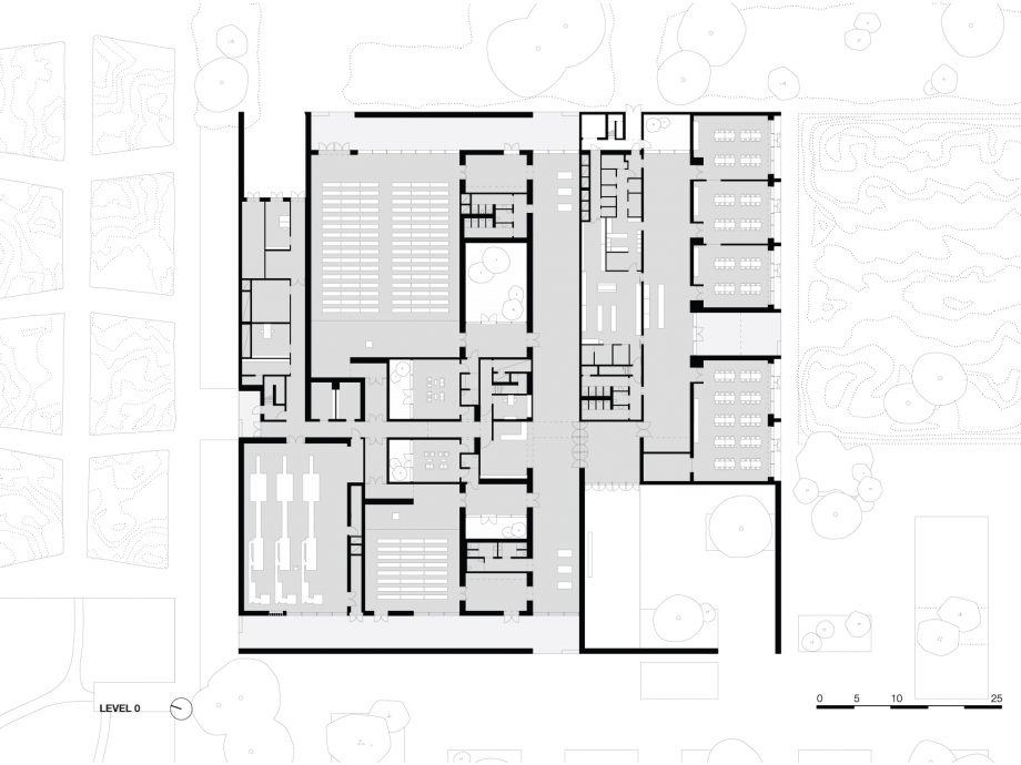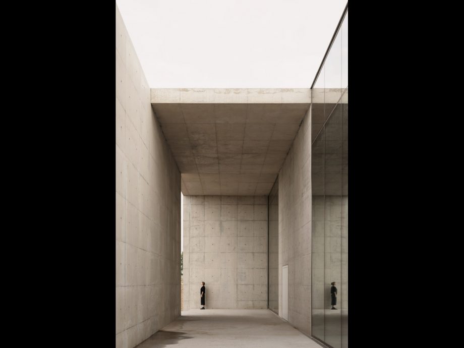 Crematorium Siesegem is located in the countryside just outside of Aalst, Belgium. Trees and shrubs line the perimeter of the plot while the crematorium is situated in the middle, with a footprint of 74 by 74 meters. The surrounding greenery is envisioned as an extension of the crematorium space and is an important part of the funeral ceremony. The south-western corner of the building opens onto a patio and serves as a transitional zone, welcoming visitors and pulling them inwards. Once inside, a clear sequence of spaces unfolds so the visitors never feel lost, with architecture offering spatial guidance. The crematorium encompasses two ceremonial assembly halls each flanked by a family room and a place for condolences opening towards an outdoor area. The goal was to design a building capable of internalizing the landscape so that its tranquility could console visitors and provide strength. Therefore, interior spaces are strategically oriented within the landscape to create enclosed patios blurring the distinction between interior and exterior. Next to the ceremony spaces, the technical aspects of the building are also a fundamental part of the design. The cremation process is disclosed rather than hidden, creating an unusual yet effective polarity between the mechanics and the serenity.