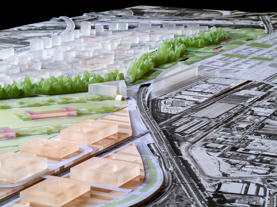 The master plan studied the area between the city of Barcelona, the airport and El Prat with its industrial area constrained by motorways, railways, metro lines and the river. The land between the city and the northern reaches has long been cut off by large-scale transit infrastructures making it difficult to access. The project was undertaken to fuse the new development with the 19th-century fabric of the old city, and supported by new underground roads and rail links and by including a new seventy-hectare metropolitan park connected to the riverbed of the Llobregat as well as the river delta landscape. The programme includes office buildings, business and commercial spaces, sports facilities, and 5000 homes. It is an enormous project to be implemented in phases over twenty to thirty years, and aims to rearrange the metropolitan area by integrating old and new infrastructure, giving back visibility to El Prat’s landscape, and creating a new park at the southern entrance to Barcelona.