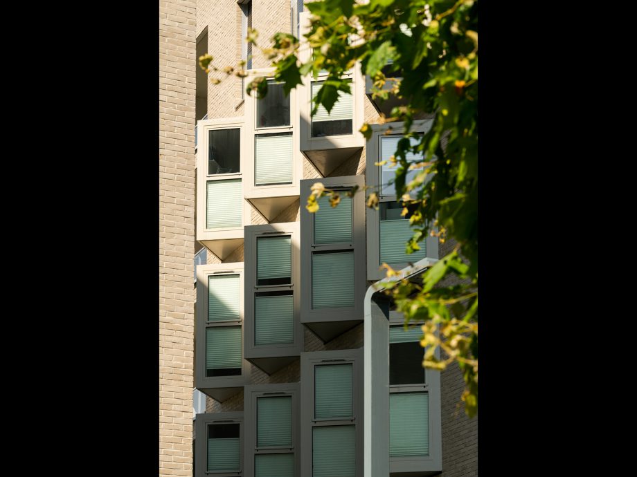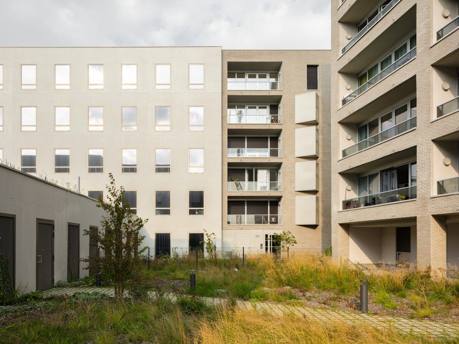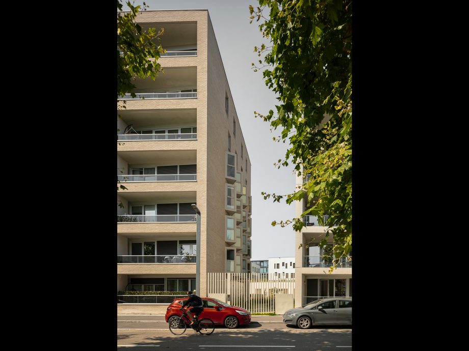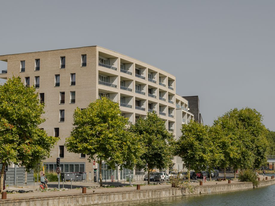The complex functions according to mixed-use principles, assembling offices and housing within four buildings. The two residential buildings to the south of the site comprise housing units for rent (building A) and sale on the open market (B). They stand out with their beige brick facades curving along the canal line and protruding volumes, known as ‘spines’, which are a modern reinterpretation of industrial bay windows and provide each apartment with direct views over the Deûle. There are two office buildings (C and D) on the northern side, offering extensive floorplans and flexible workplaces. Both buildings have been awarded ‘good’ BREEAM environmental certification for their energy performance.
