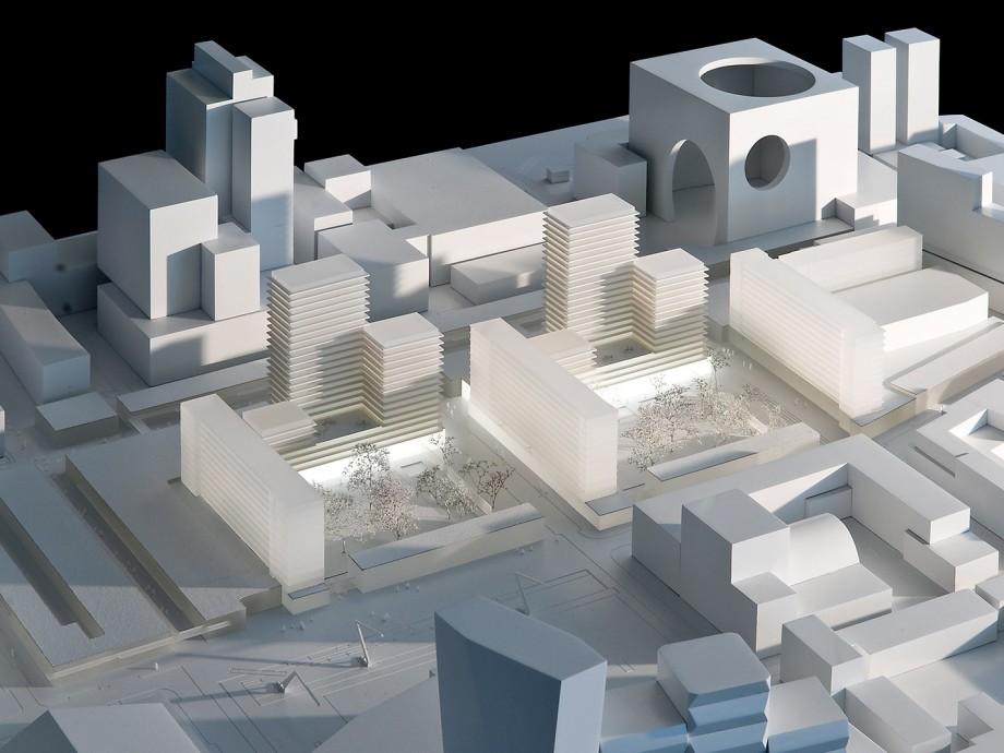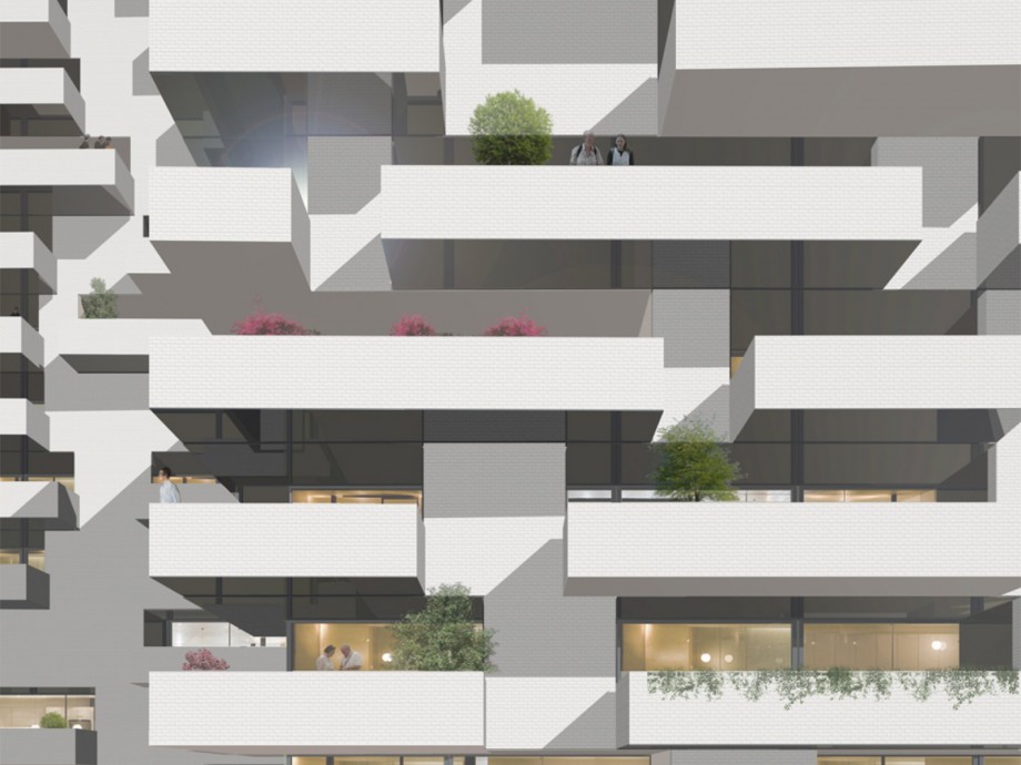 The Lijnbaanhoven is a redevelopment design for the Lijnbaan area in Rotterdam, the first pedestrian commercial area in Europe, originally planned by firms Van den Broek en Bakema and Maaskant during the 1960s. The aim of the project was to revitalize the area by adding a huge residential use. The existing apartments turned their backs on the commercial area and the two different uses were not integrated, leaving a massive logistic wasteland at ground level. The new project was able to mix the uses: commercial space on the first two floors, apartments above that, and the blended area between the two for a large terrace and room for retail expansion. The residential balconies, depending on their exact orientation, are broad, recessed or semi-recessed and have been designed for maximum sun exposure during the afternoon.
