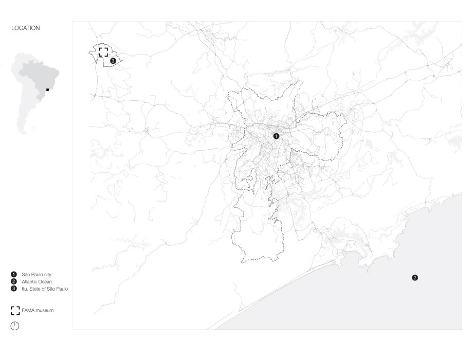 Established in 1911 and designed by French-Brazilian builder Louis Marins Amirat, the São Pedro jeans factory in Itu is a prominent example of early European-influenced industrial architecture in Brazil. After closing in the 1990s, the site was heritage-listed in 2003 and acquired in 2012 by artist and collector Marcos Amaro, who founded FAMA, Fábrica de Arte Marcos Amaro, to transform it into a space for artistic production.