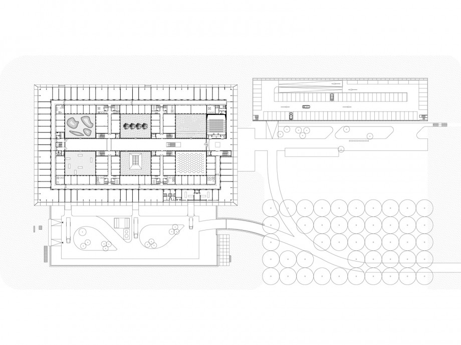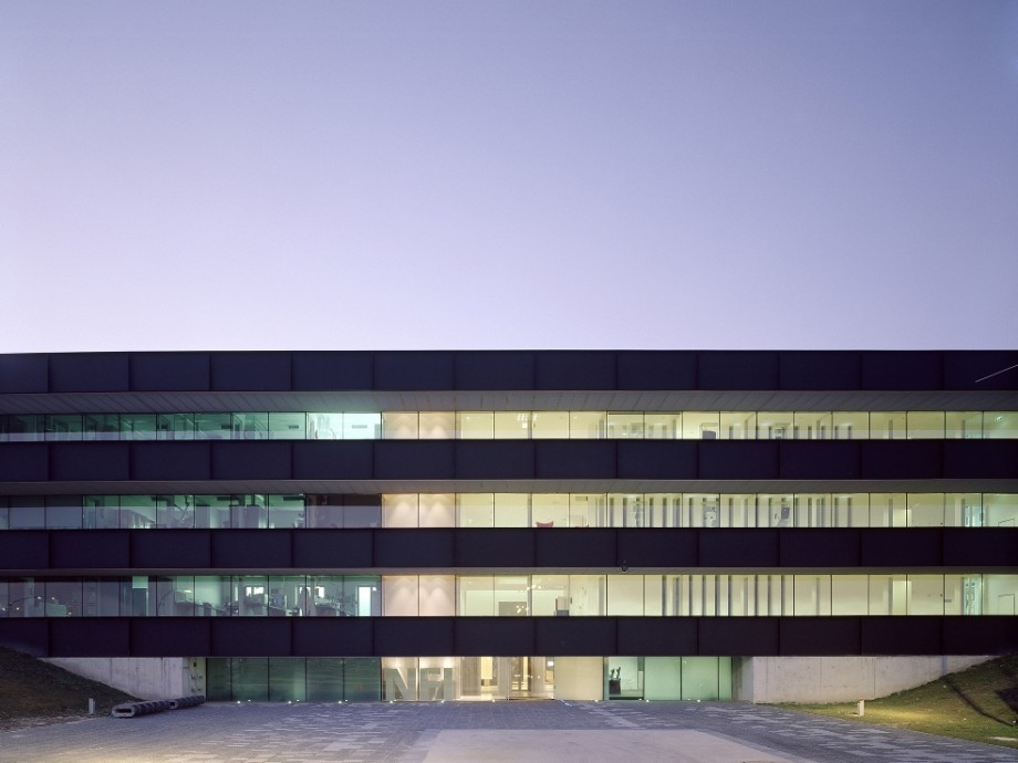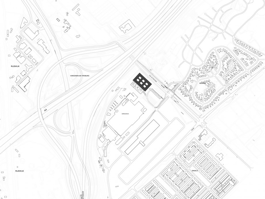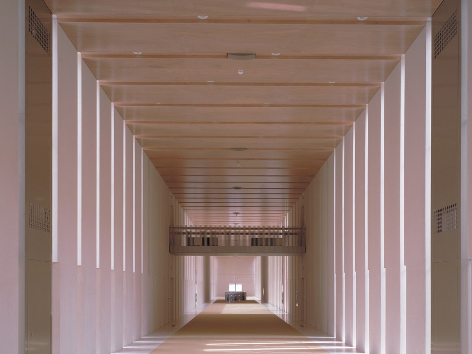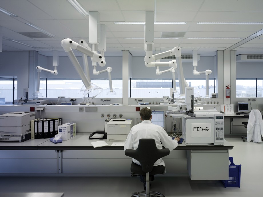 Located in Ypenburg, The Hague, the NFI is a glazed volume in a steel box set in a typical Dutch motorway landscape. The building is both a high security bulwark and an eye-catcher. The NFI programme yields a corridor of almost 1100 metres long, lined on one side by cellular offices and on the other by laboratories. This required corridor was ‘folded up’ to produce a building on four levels, one of which is underground. The programme is arranged around six patios and in such a way that the size and position of the individual laboratories can be adapted to changing circumstances; these laboratories are located along the outer perimeter of the building. The steel box acts as solar shading, where light penetration is different on each side because the steel cantilevers around the building are not equally deep. The architectural and spatial expressions of the interior are determined by materials and colour.