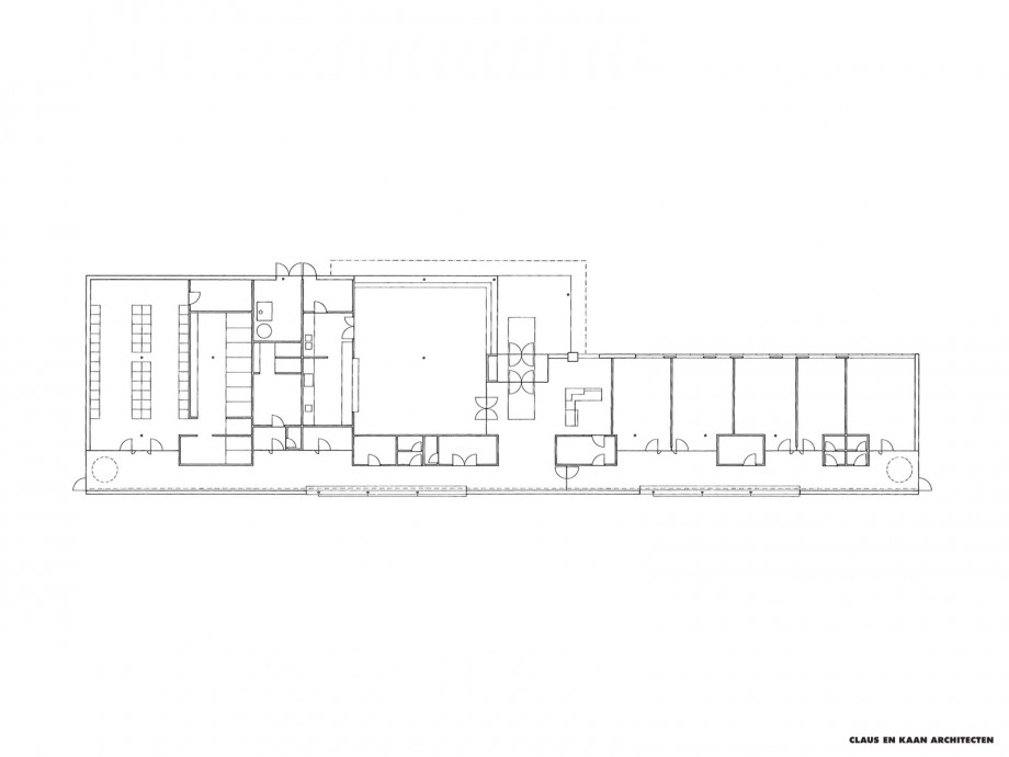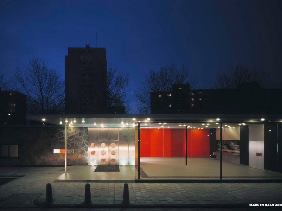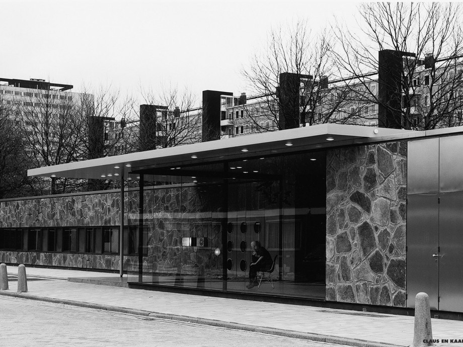 The Buitenveldert district Public Works Department is located on the southern side of Amsterdam, built in the early 1960s as part of the A.U.P. by Van Eesteren. This building fits into the rectangular grid of freestanding structures. It forms a screen marking the boundary between the linear parkway and the forecourt while achieving a clear internal cohesion. The architecture combines the functionality of a warehouse with the opulence of a bungalow. Its appearance seems to contradict its function.