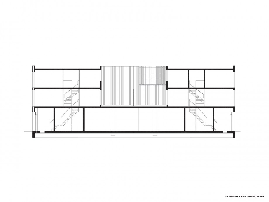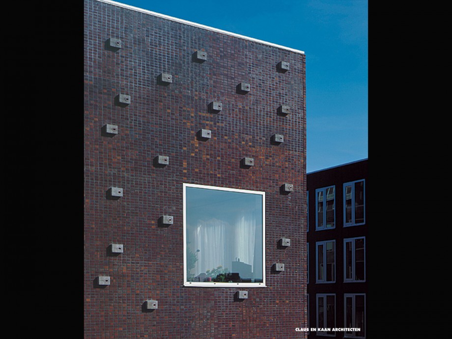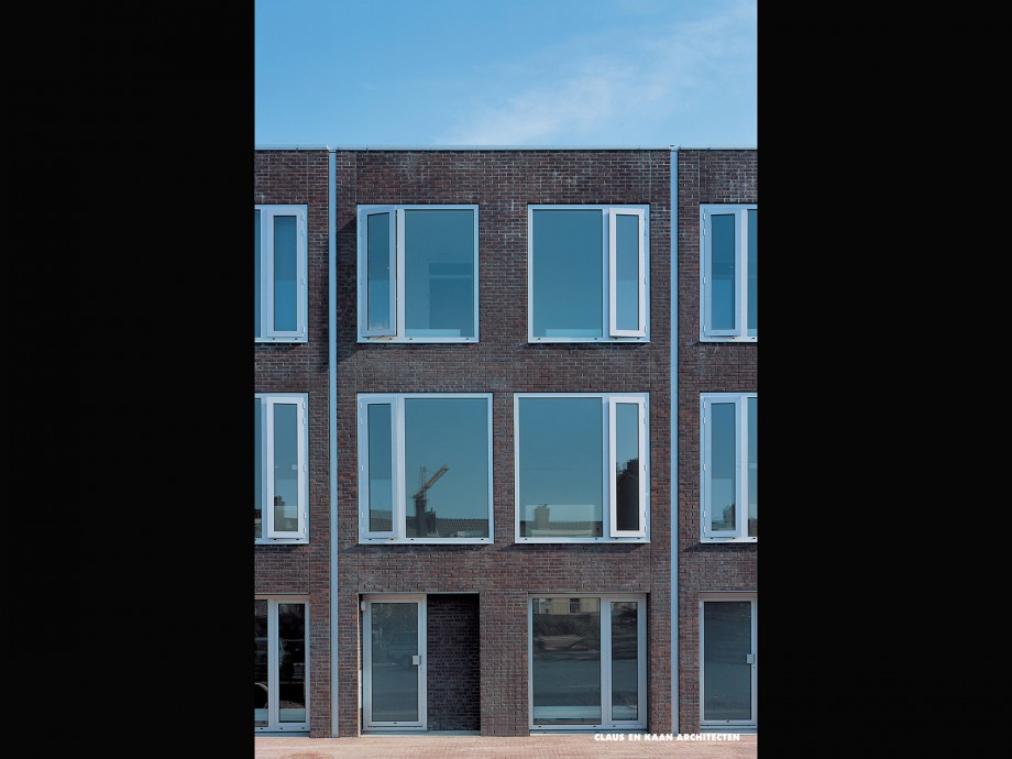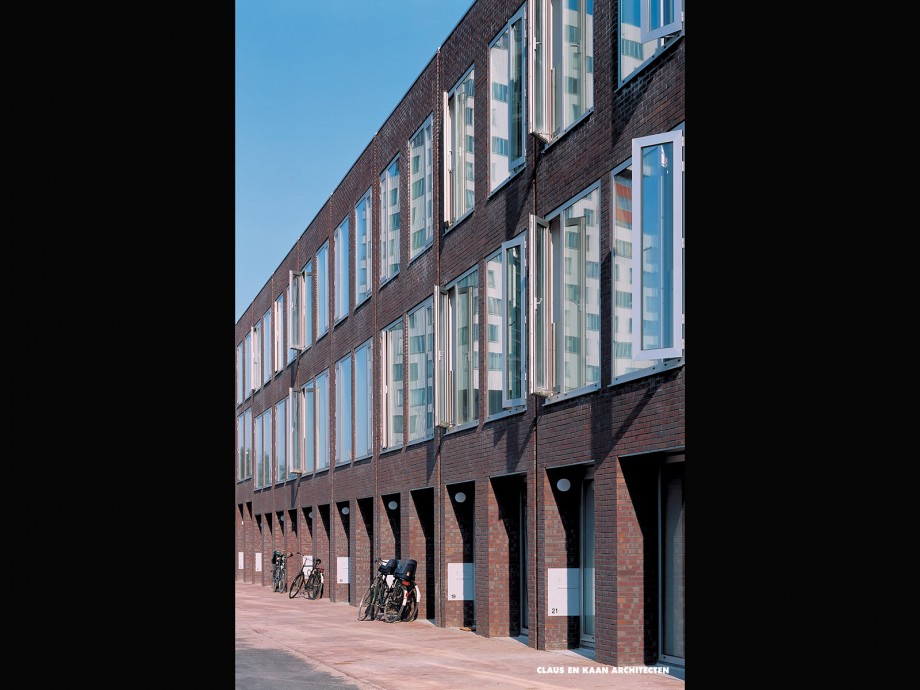 Rietlanden is part of the Borneo Sporenburg urban development plan and is situated on the mainland. The project is an urban microcosm. The architecture is remarkably varied, with different types of apartments differing in price range and intended residential categories. Dwellings are arranged in three blocks and organized in two rows. The glass and the aluminium frame of the windows, which stand out prominently from the surface of the façade, define the overall aesthetic. Those large glass surfaces establish a direct relationship between the homes and the street. In their extroversion, these apartments are the very opposite of the generally inward-looking dwellings of Borneo Sporenburg. The buildings are a contemporary echo of the speculative architecture of the 19th century, when individual apartments were pushed together into urban blocks. The prototype structure for the Rietlanden is the veranda house, named after its inner terrace and veranda on the upper floor.
