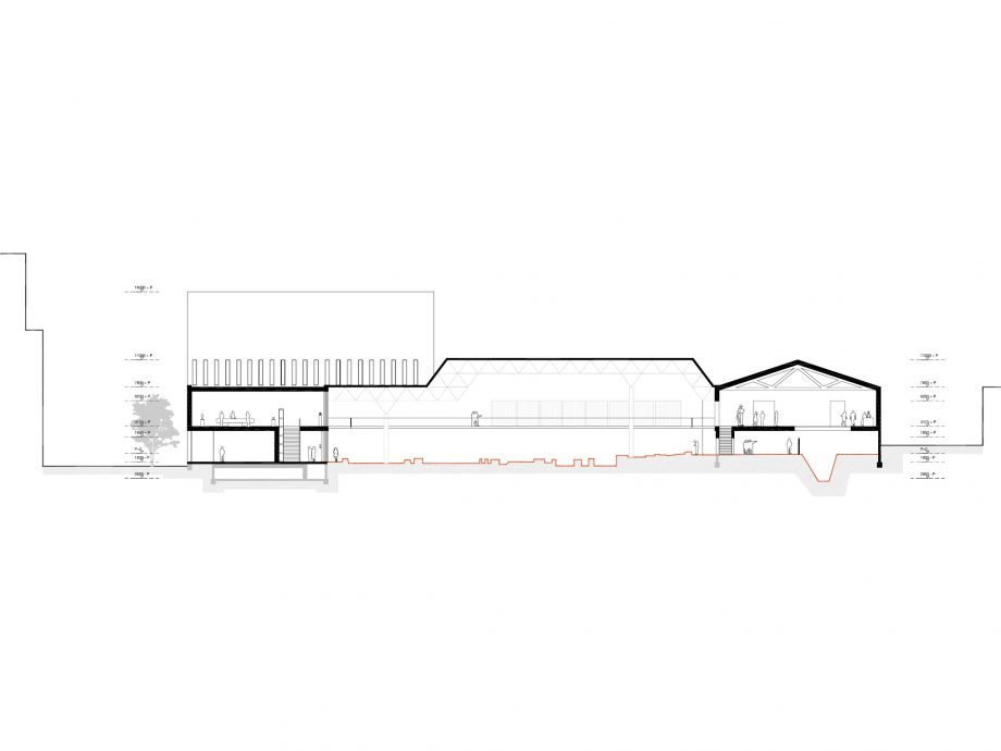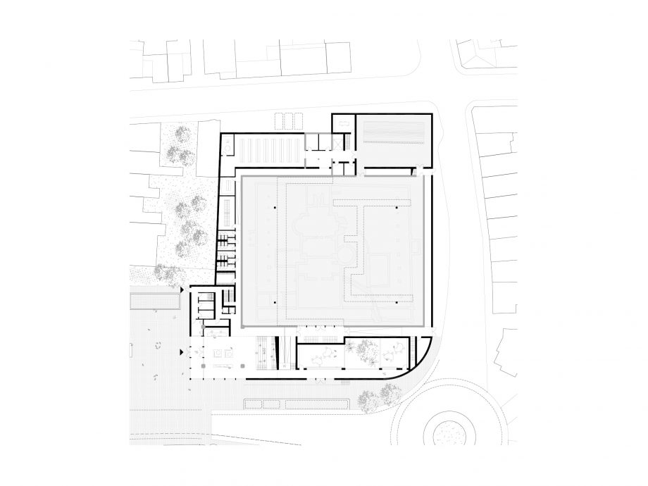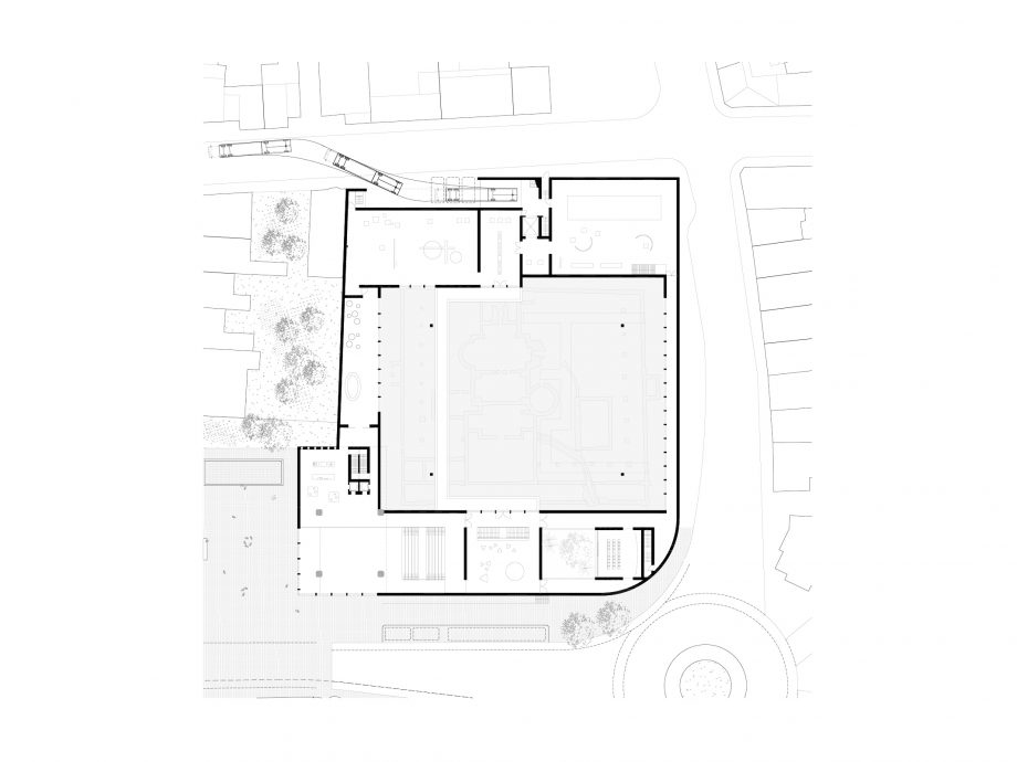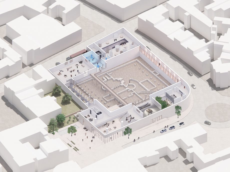 The new museum retains the principles of the ancient public baths, organizing the exhibition rooms as a sequence of interior spaces and outdoor, enclosed patios. A transparent, welcoming foyer mediates the transition towards the interiors, bringing the visitors to the public café, the children’s ateliers, and the exhibition route. The organization of the new functions, the realization of the technical facilities, and the construction sequence are designed to protect the archaeological monument and provide the new building with the highest quality and sustainability standards. The former depot tower of the existing building is also integrated into the new route, hosting the office areas, a theatre, and a public rooftop, framing the museum as a new landmark for the city.