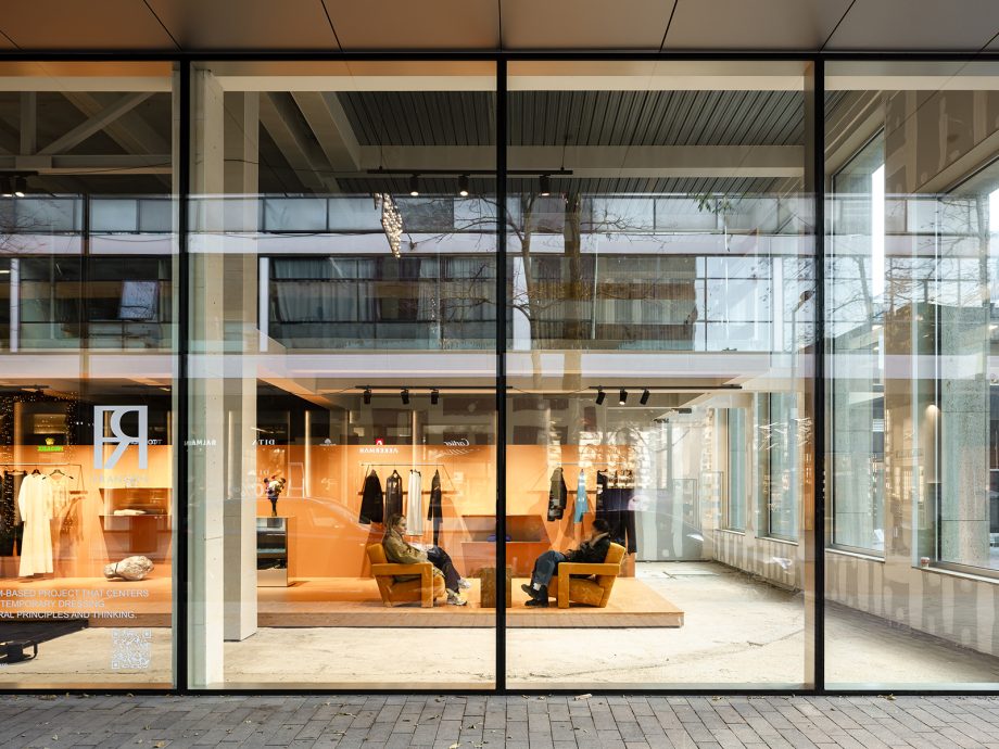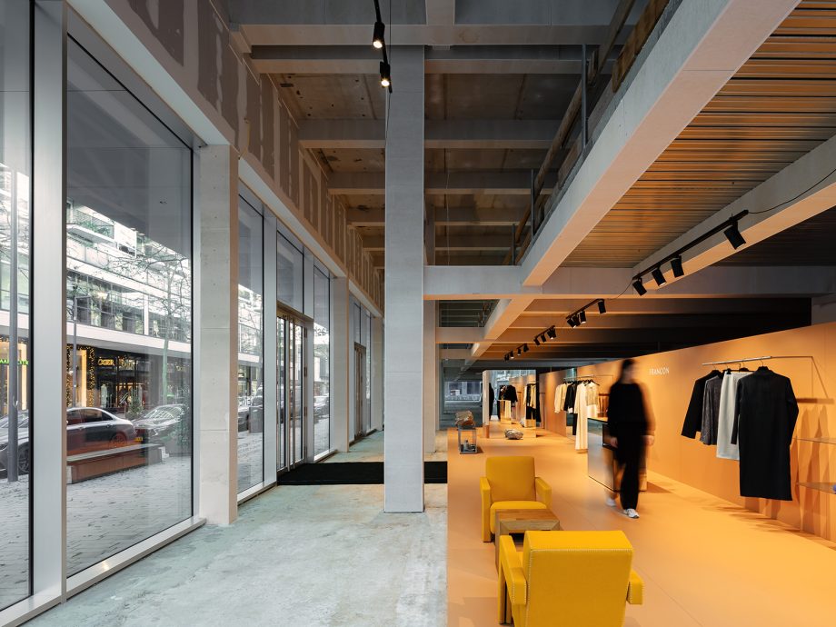 The ground floor has been reimagined as an open and inviting plinth, seamlessly bridging the gap between the interior and exterior, once again bestowing upon Kruiskade its exclusive status as a top-tier shopping destination. A sleek new structure clad in natural stone stands tall and proud. Its expansive windows offer captivating views of the vibrant street life below, while a magnificent glass-roofed pavilion crowns the building, adding to its allure. Spread throughout The Lobby are high-end retail and dining experiences, culminating in a rooftop restaurant and garden that provides panoramic views of the city and thus creates an oasis amidst the urban hustle and bustle.