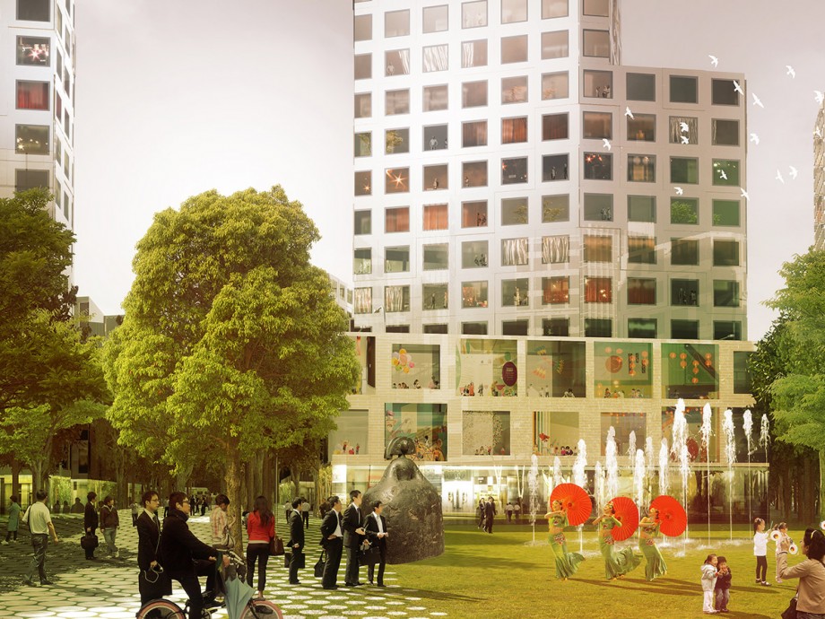 The rational logic of the grid has been employed for the project by embedding and refining the given Tianjin CBD’s one. The new grain of the XLW9’s grid takes the same squared shape to another level of precision and finishing. Thanks to this a variety of unique urban conditions has been created: diversity of parks, public spaces, housing typologies, high-rise buildings and streets.