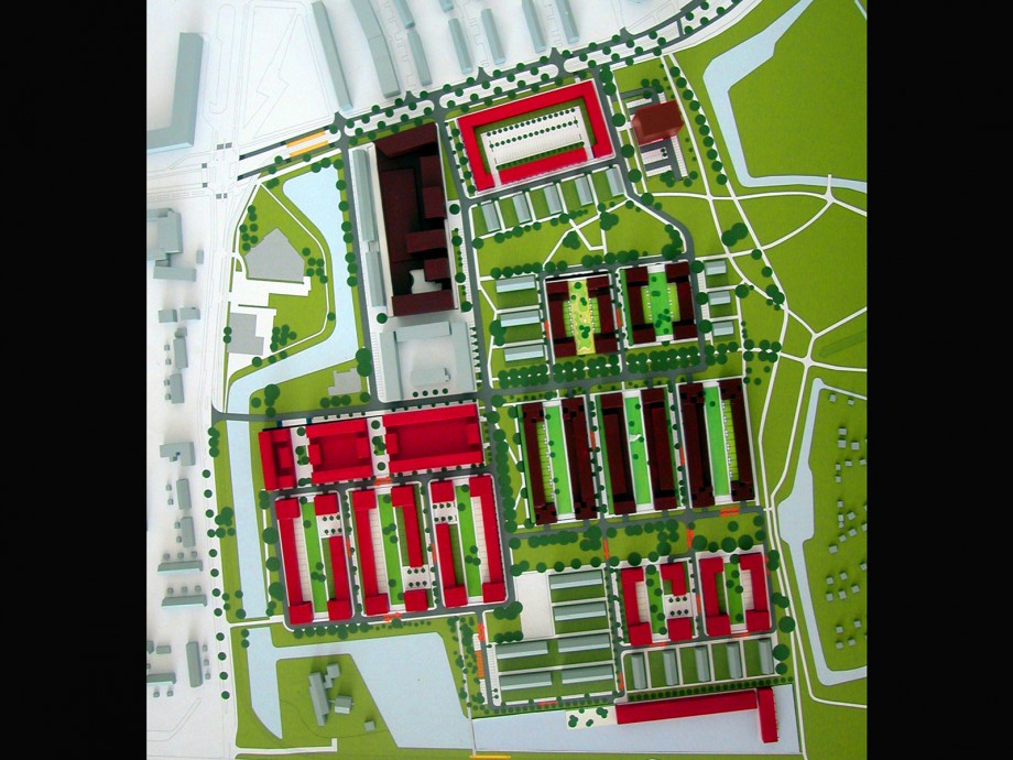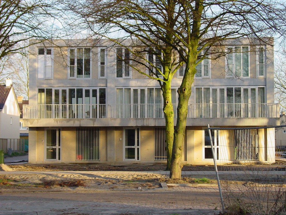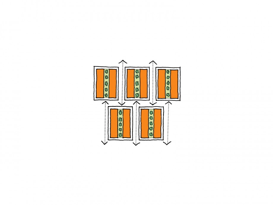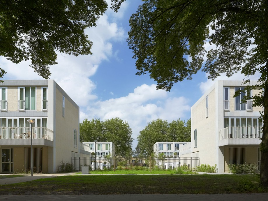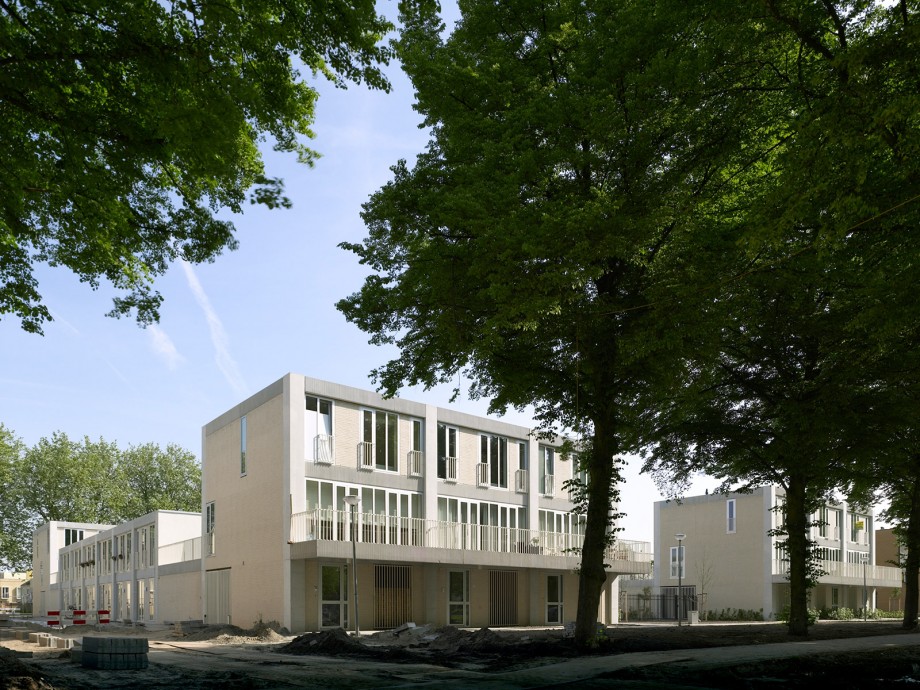 A neighbourhood in Zuidwijk, situated in the south of Rotterdam and part of the extension that was built in the 1950s-60s based on an urban plan by Willem van Tijen, was to be completely restructured. Nearly all the mid-rise blocks were demolished to make way for single family low-rises. In the course of this operation 1000 dwellings on roughly sixty squares were replaced by 600 dwellings double the size. In combination with a realistic parking ratio of two cars per dwelling, this resulted in a considerable increase in building density and in a 50% reduction in the number of inhabitants. The emphasis of the design is on retaining and reinforcing the abundant natural green spaces and structures so characteristic of post-war districts. This was achieved by sticking to the footprints of the old buildings but inserting a different typology: single family dwellings with collective gardens.