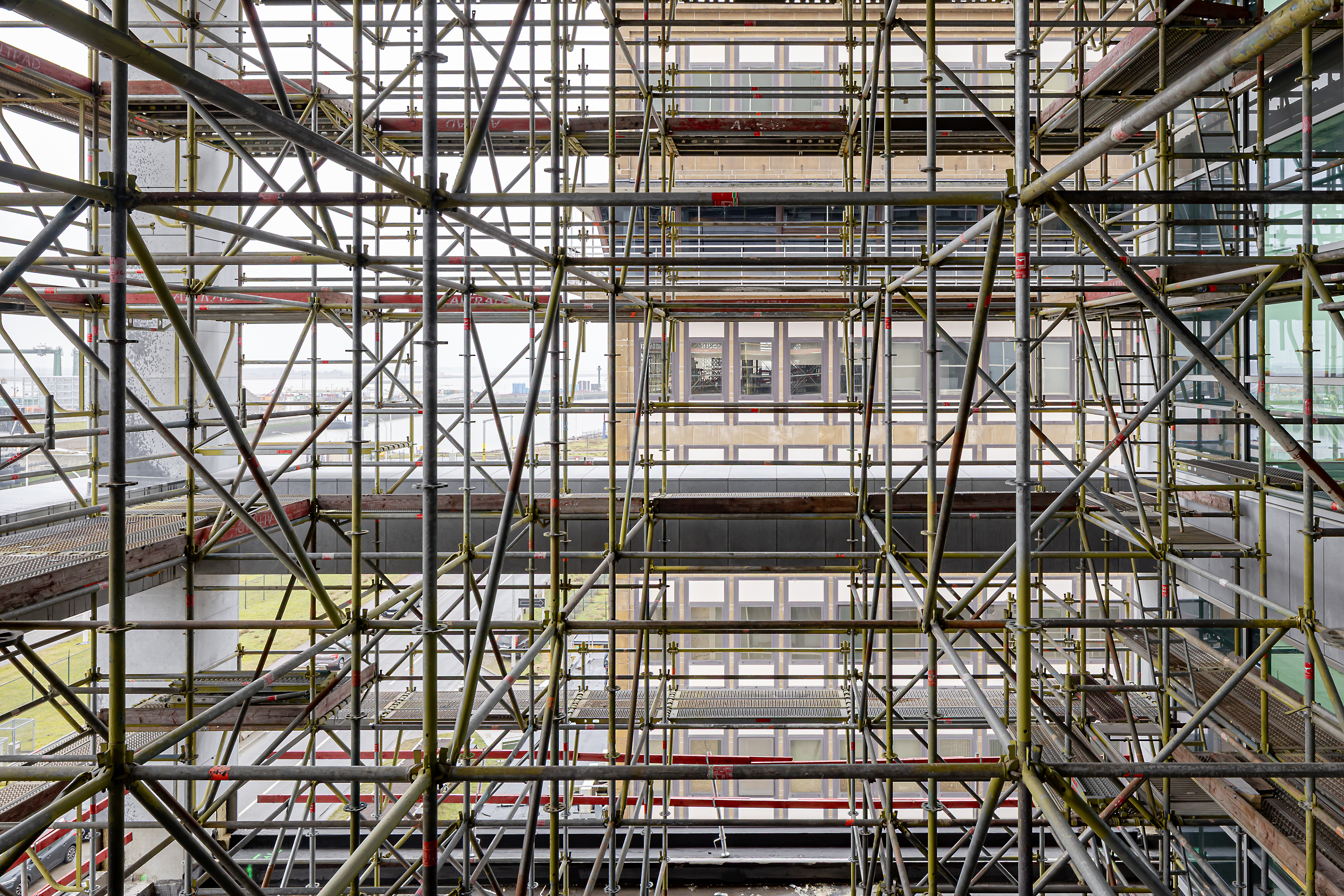 At the Port of Antwerp-Bruges, construction of the Antwerp Coordination Centre is progressing steadily. Positioned centrally on the plateau between the 500-metre-long twinned Zandvliet lock (ZAS) and Berendrecht lock (BES), the building is already clearly recognisable as the new control tower. The generous structural frame and eight-storey volume are now visible, outlining the future control tower that will coordinate and supervise port traffic on a 24-hour basis.