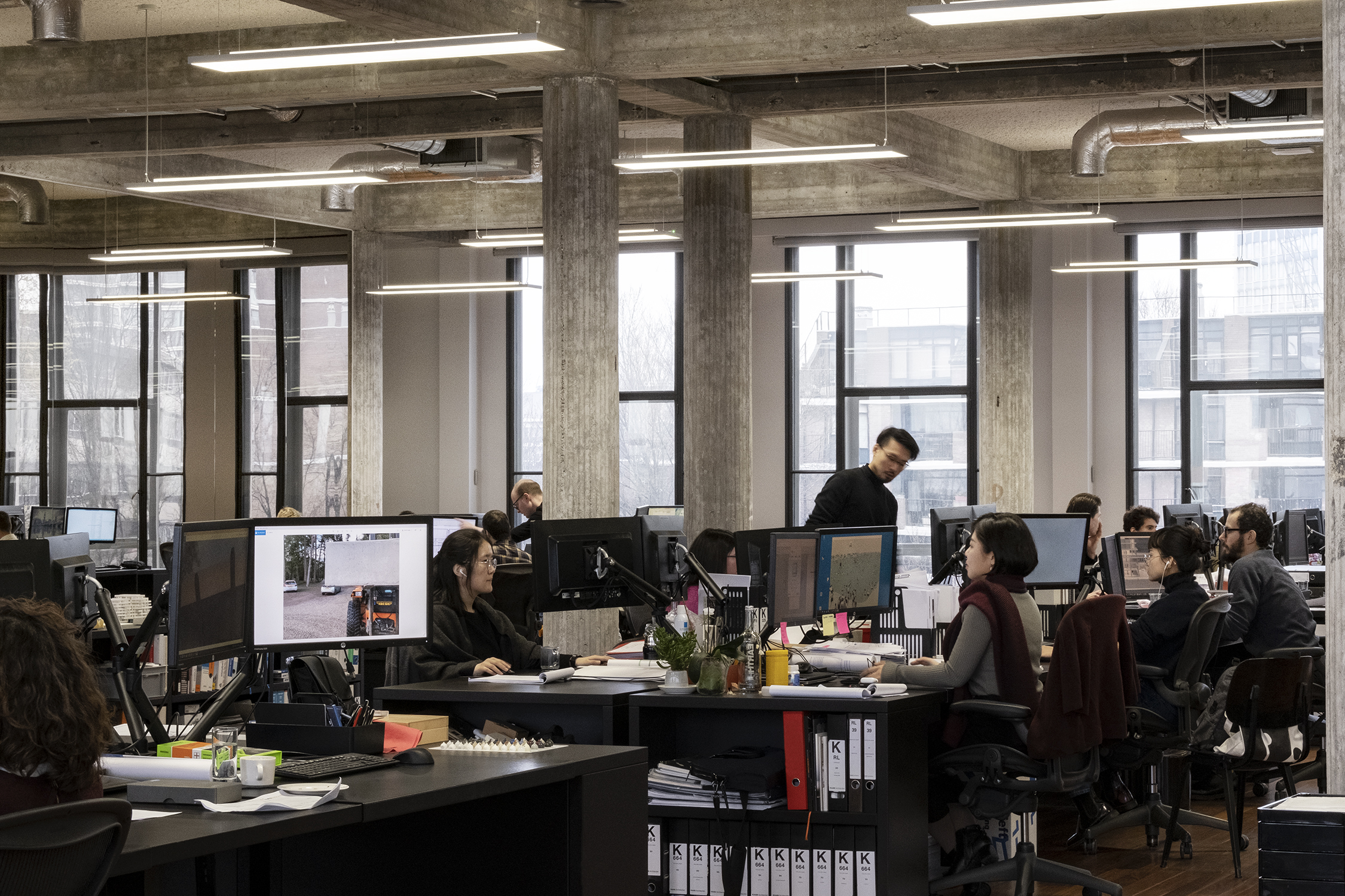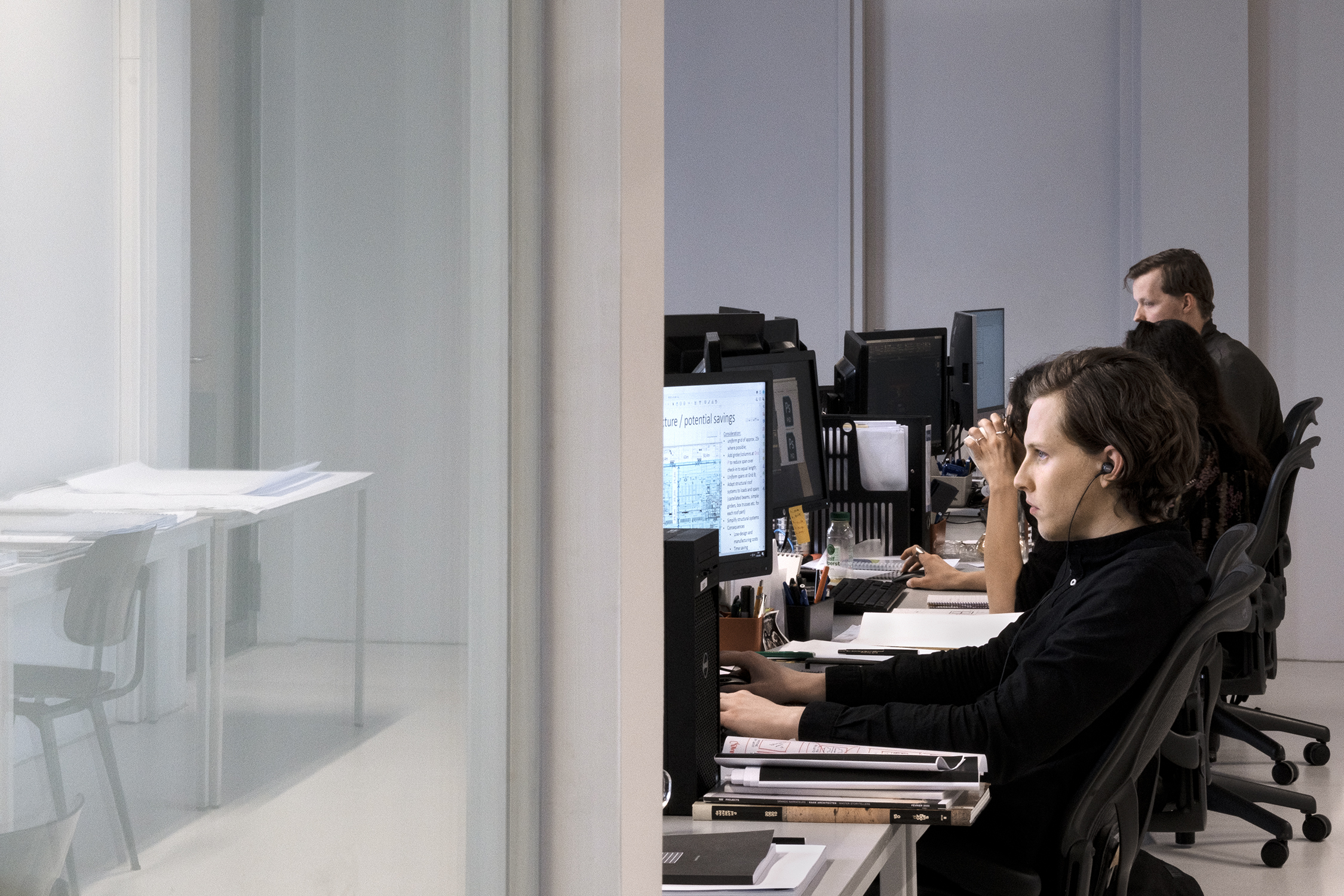 A day at De Bank is precisely such a complex situation, comprising a variety of dynamics. Busy periods of activity, team meetings and presentations are interspersed with moments of quiet contemplation and individual work. Powilleit welcomes this chaos, claiming: “I enjoy working when people no longer notice my presence, when I can really capture them in their own environment and concentration.”