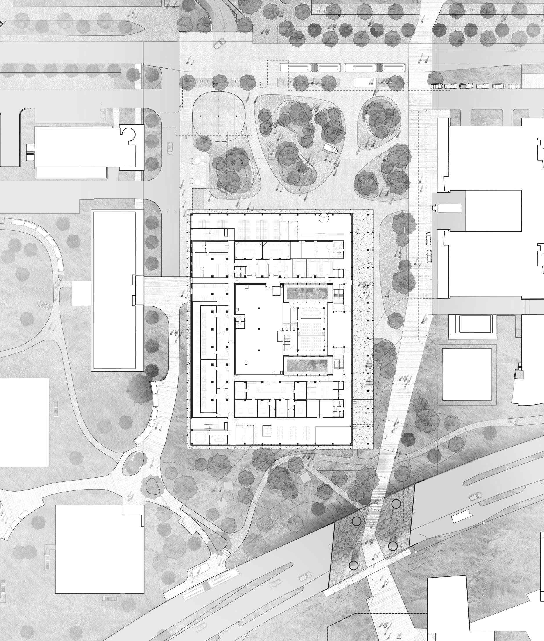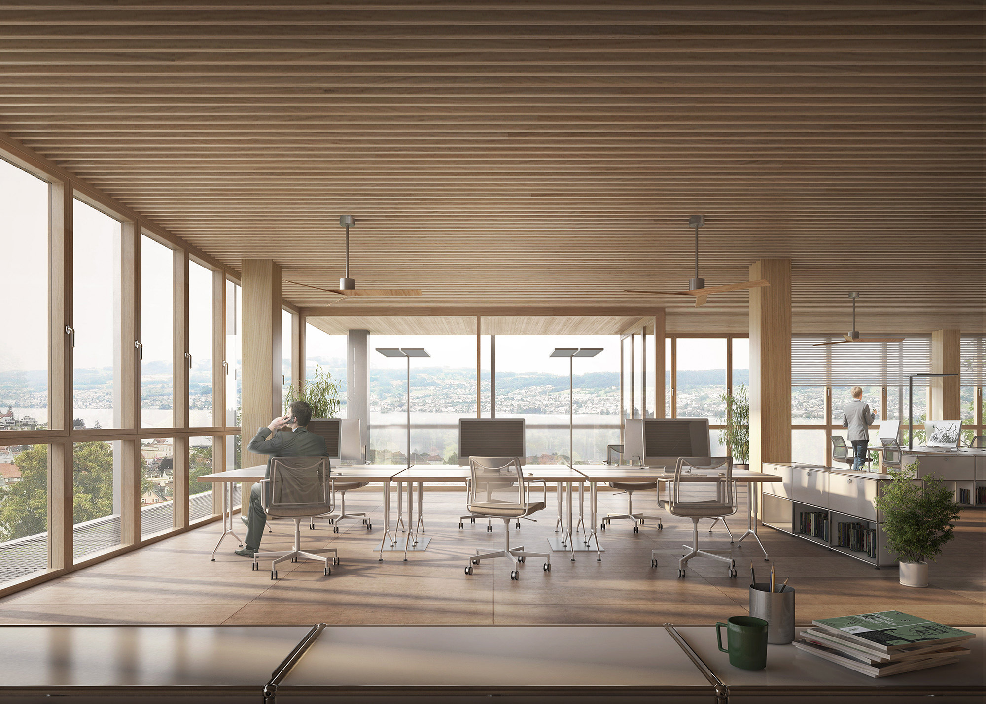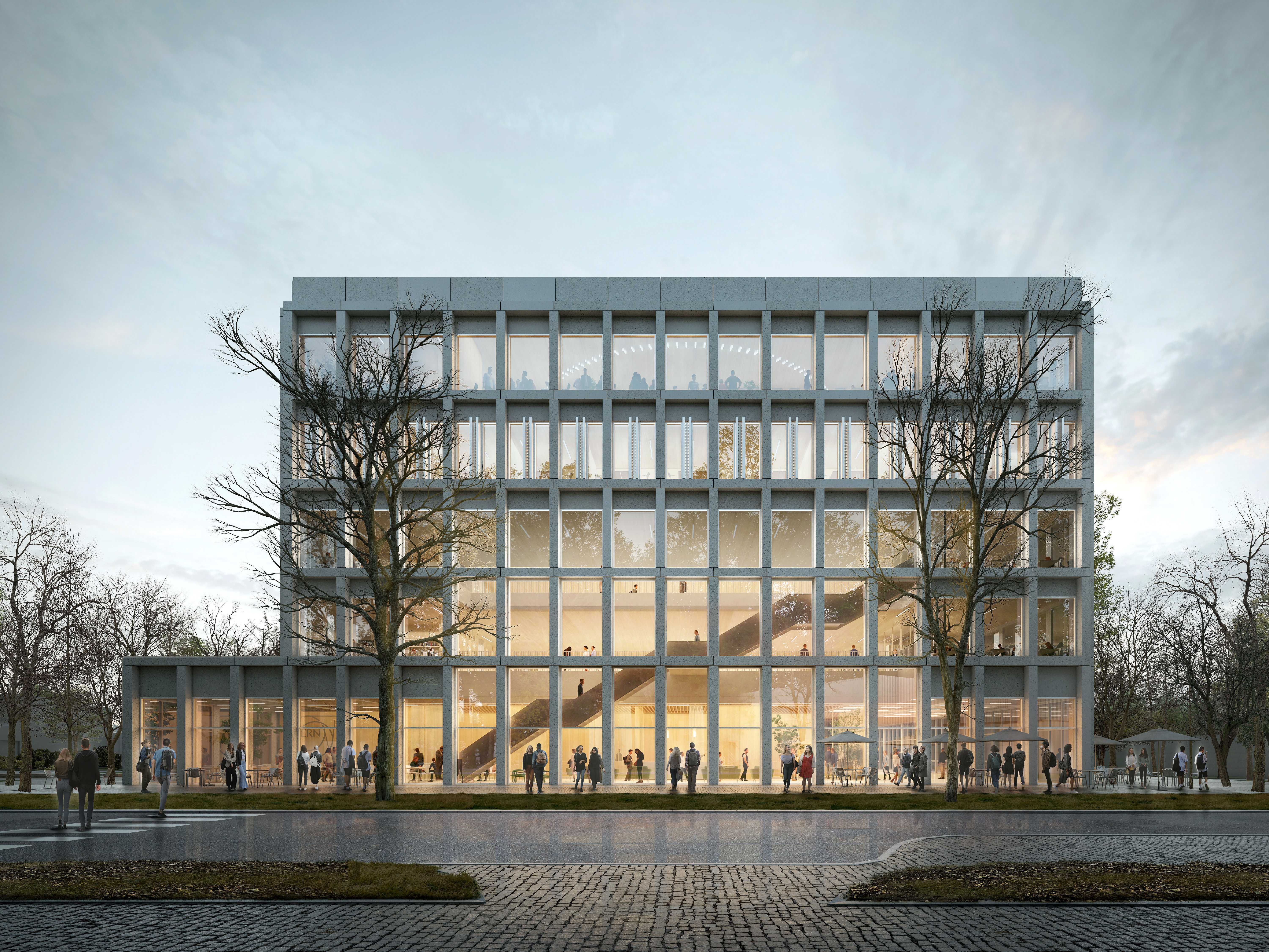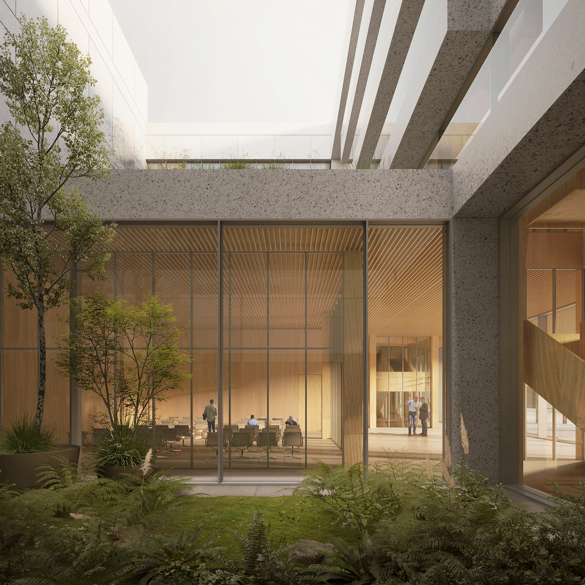 The ASB will replace the current Colladon parking lot, adding seven laboratory and office space floors, two of which are underground. Designed to support 26 research groups and over 500 users, it meets EPFL’s stringent research demands while fostering a collaborative environment. Sustainability is central to the design, with features like a compact form to reduce thermal loss, automated exterior blinds for solar control, and rooftop photovoltaic panels. Materials are selected to minimise greenhouse gas emissions and include local resources, with hybrid wood-concrete floors to lower environmental impact without compromising thermal inertia.