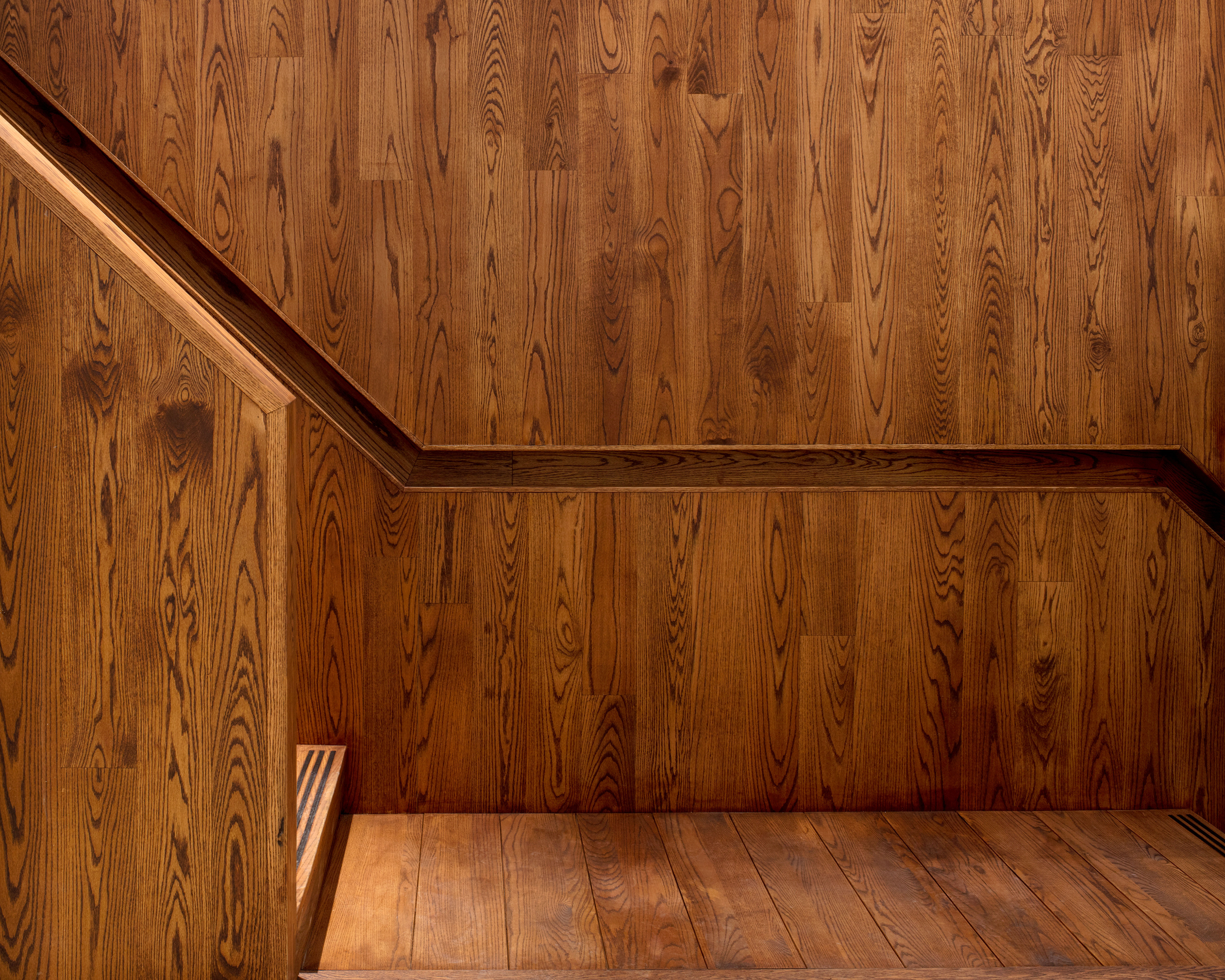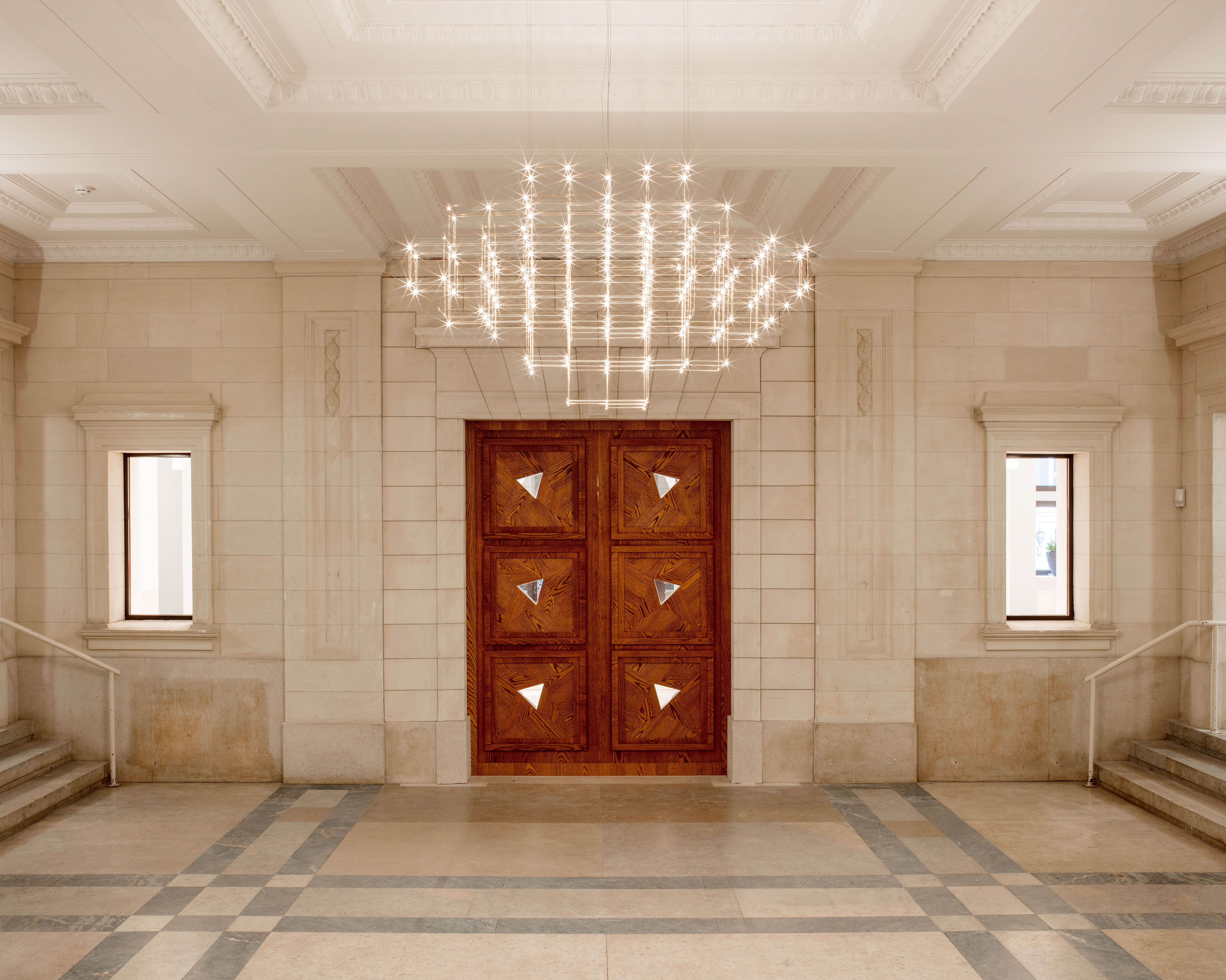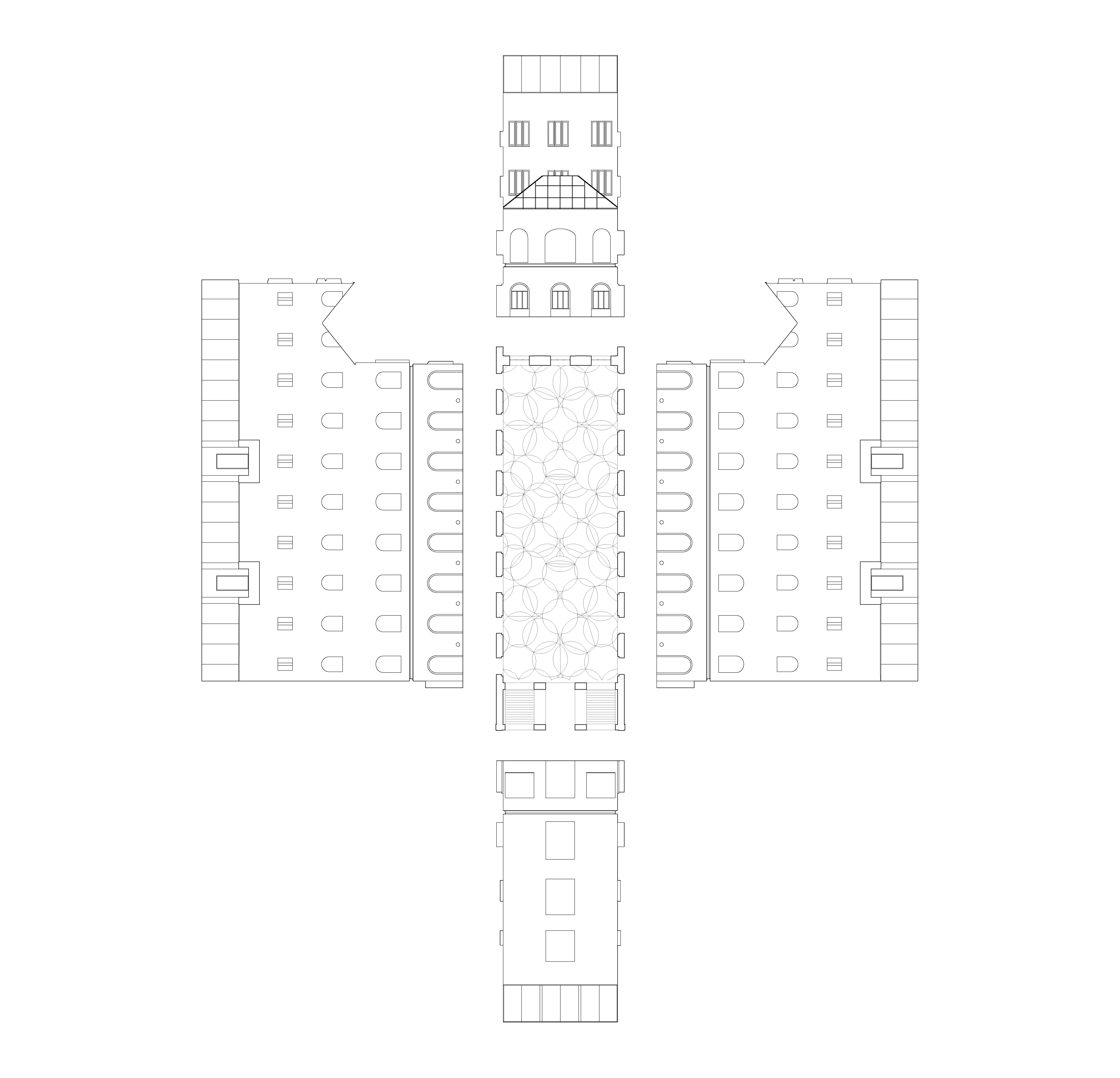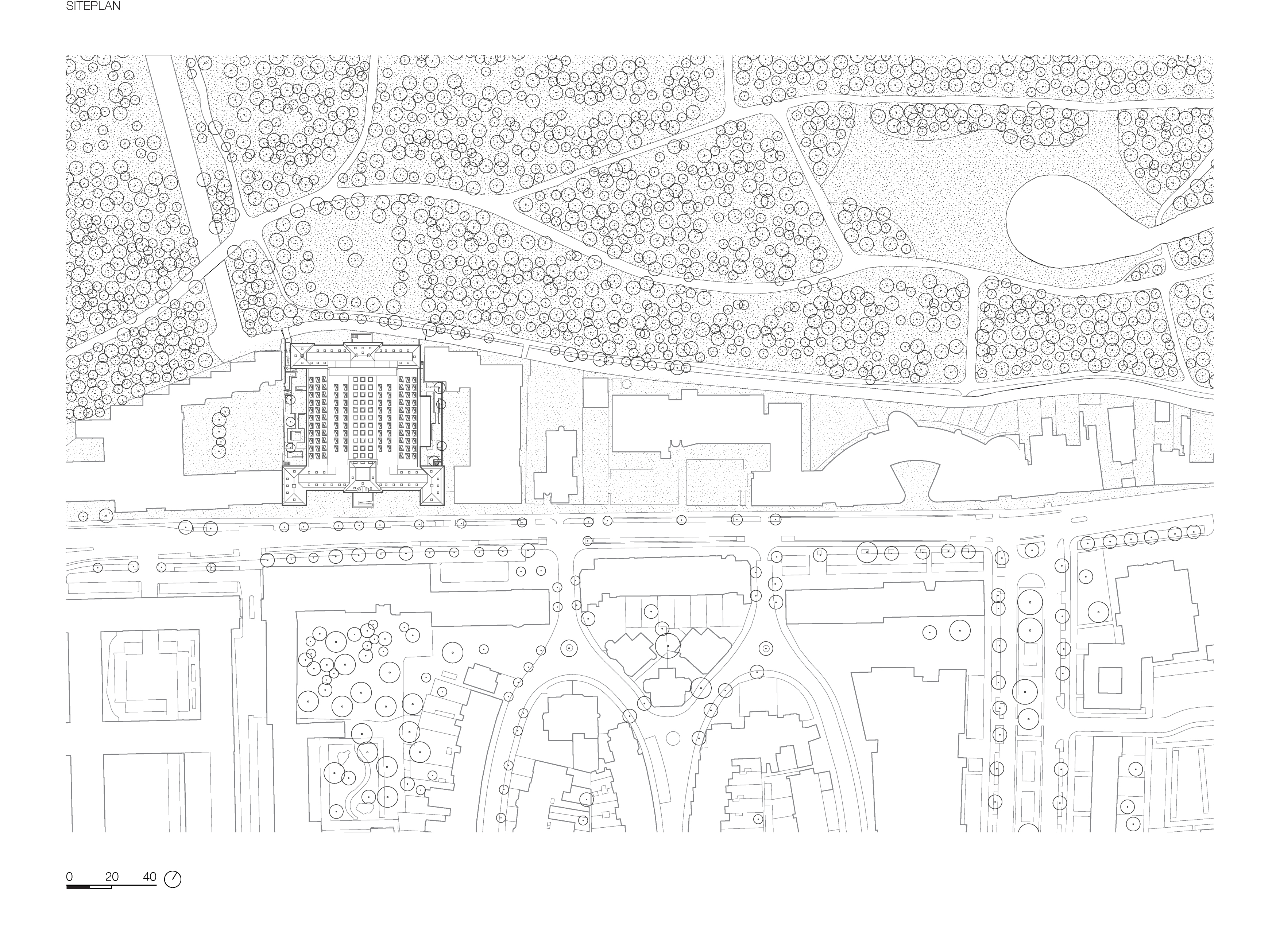 The closed hierarchical building was transformed into an open and inviting one through a clear spatial configuration and additive design. All passageways are aligned, creating long sightlines through the building, enhancing contact with the street, woods and gardens, and simplifying wayfinding. At the core of the building, a large atrium with a new mosaic floor gives a focus to the four upper floors, which house workspaces for various institutions.