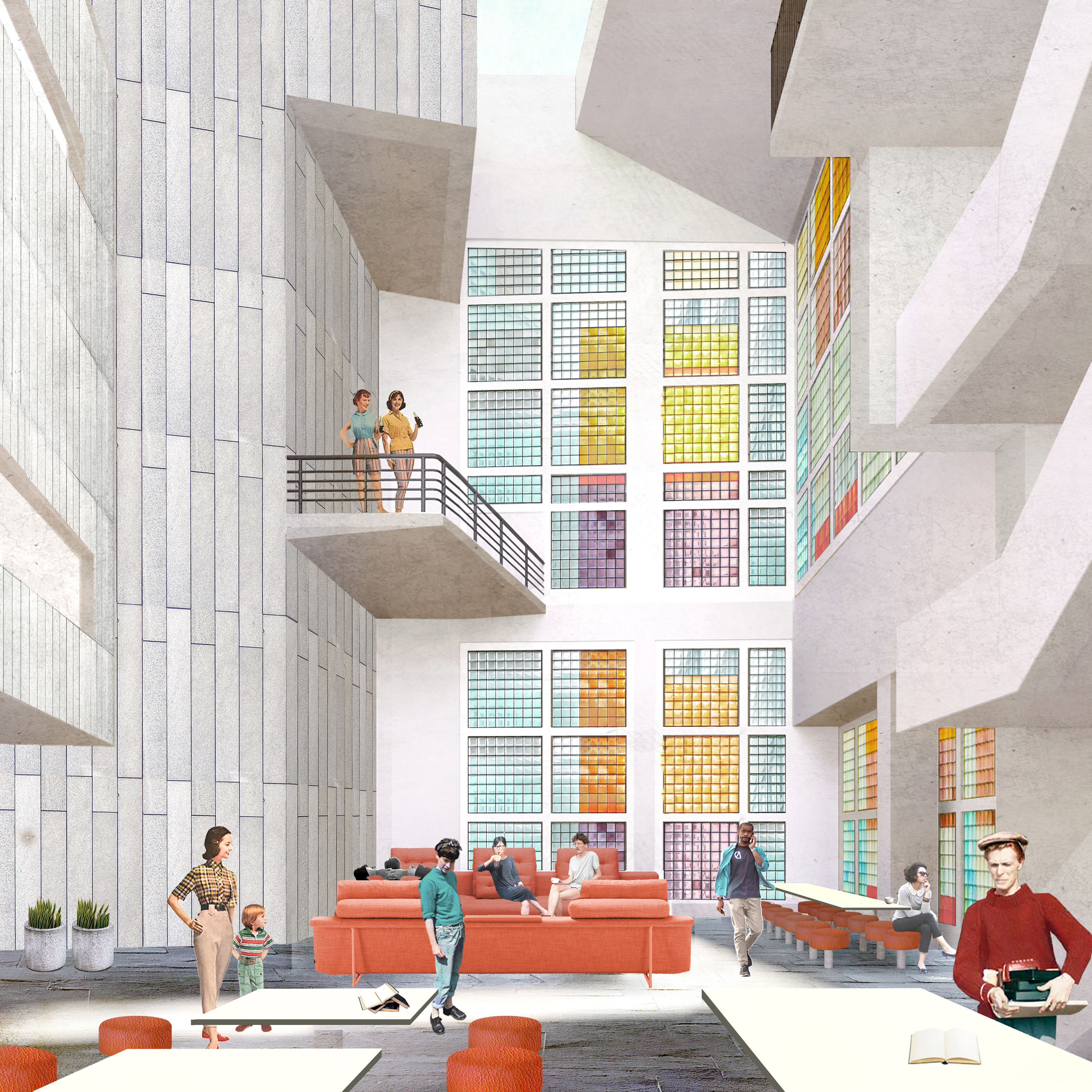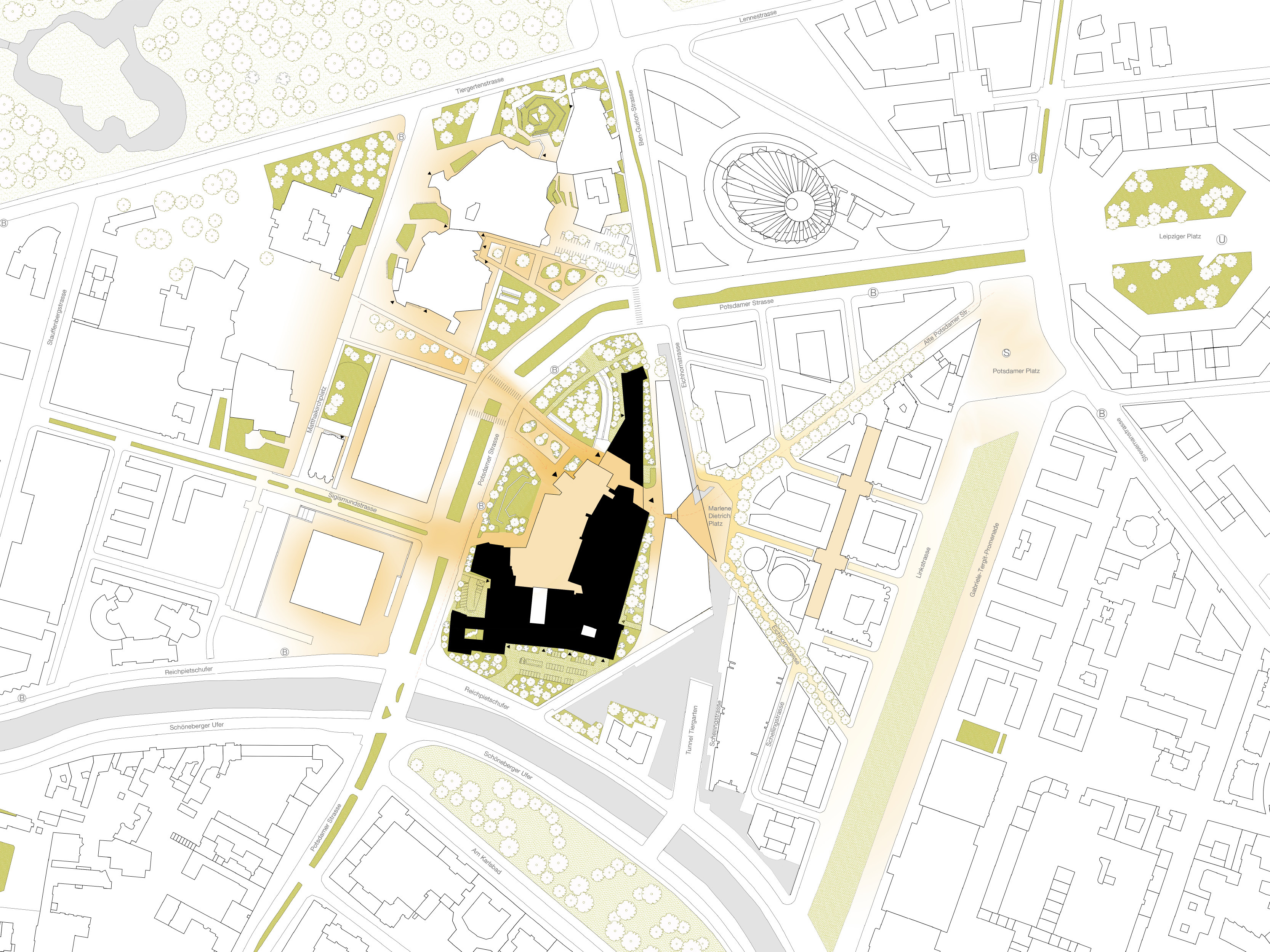 The proposed intervention for the Berlin State Library pays homage to the urban relationship between Potsdamer Platz and Kulturforum. The structure, called “Little Scharoun”, offers spaces for visitors to linger and enjoy. Unobtrusively and elegantly, the intervention fulfills multiple functions as an entrance for the state library, foyer, conference centre, and office.