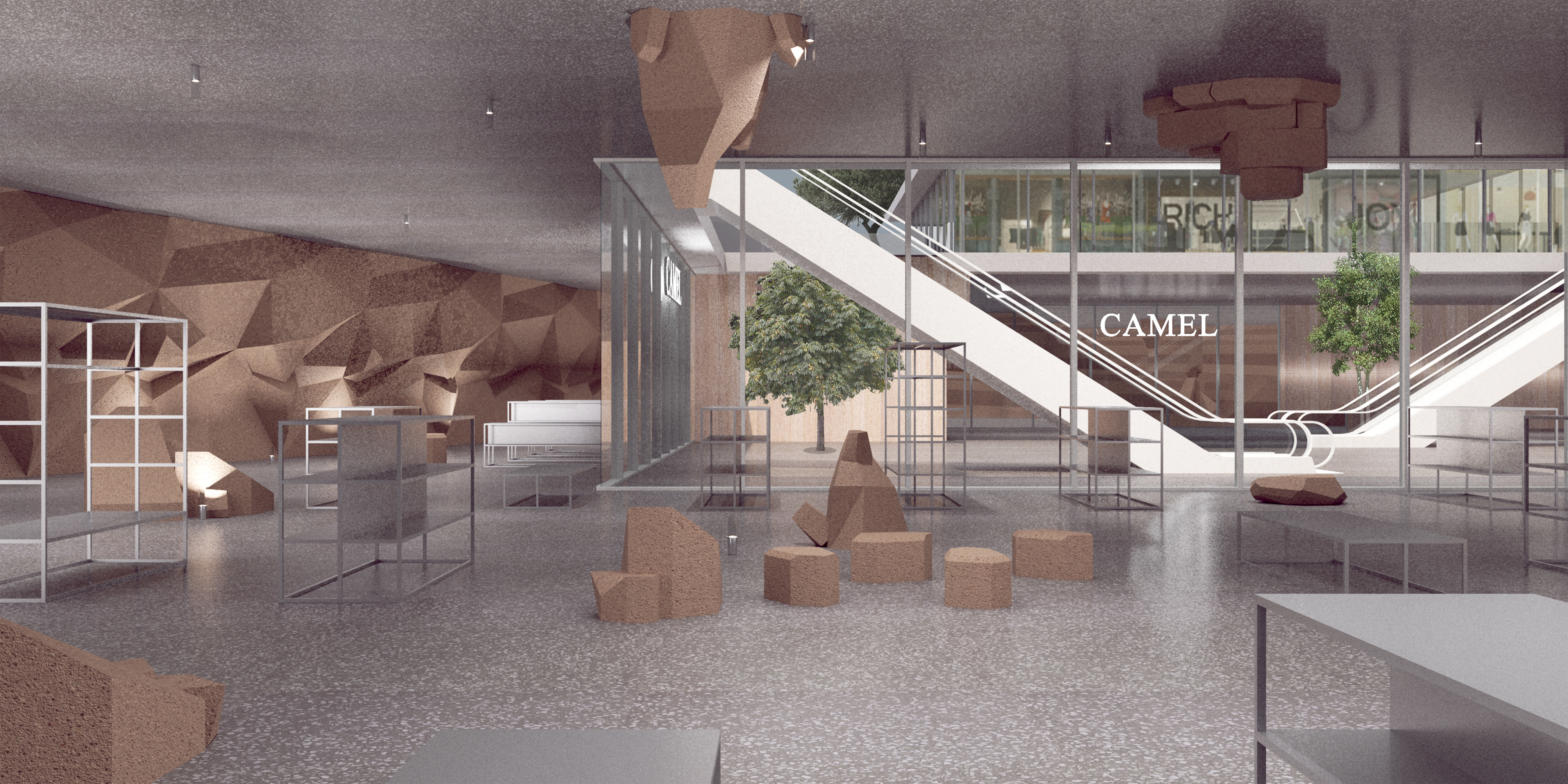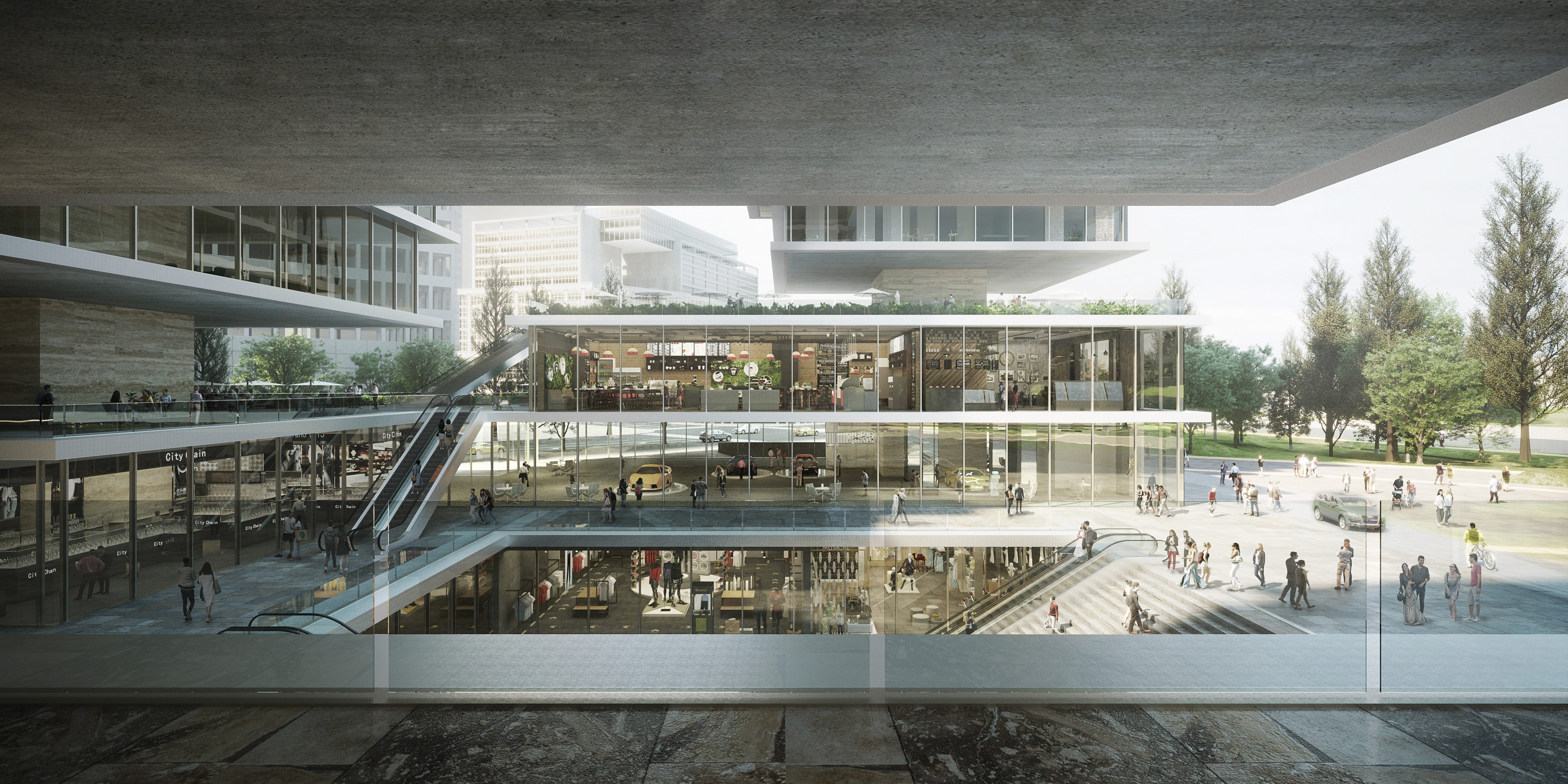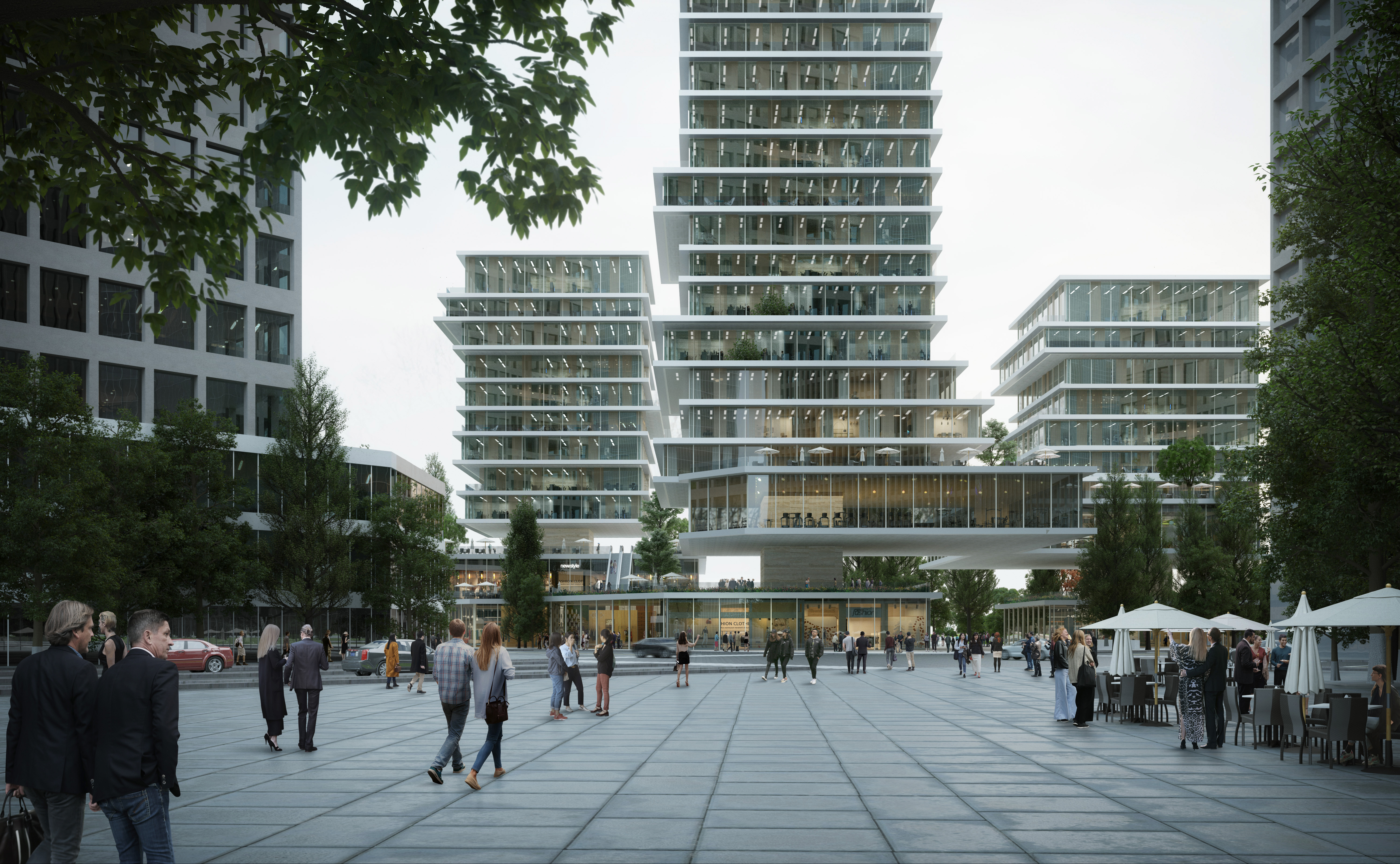 Located in Guangzhou, China, Camel Headquarters complex is envisioned as the entry point to the new development area connecting the Shamian Historical Area of Guangzhou to the newly planned Baietan Central Business Area. The project consists of three office towers and a commercial complex that houses the eponymous Camel apparel headquarters and flagship store. Positioned at the confluence point of the Huai and Zhujiang rivers, the project includes the landscape connecting to the river and forms an urban icon along the waterfront, welcoming the public into Guangzhou’s newest urban hub.