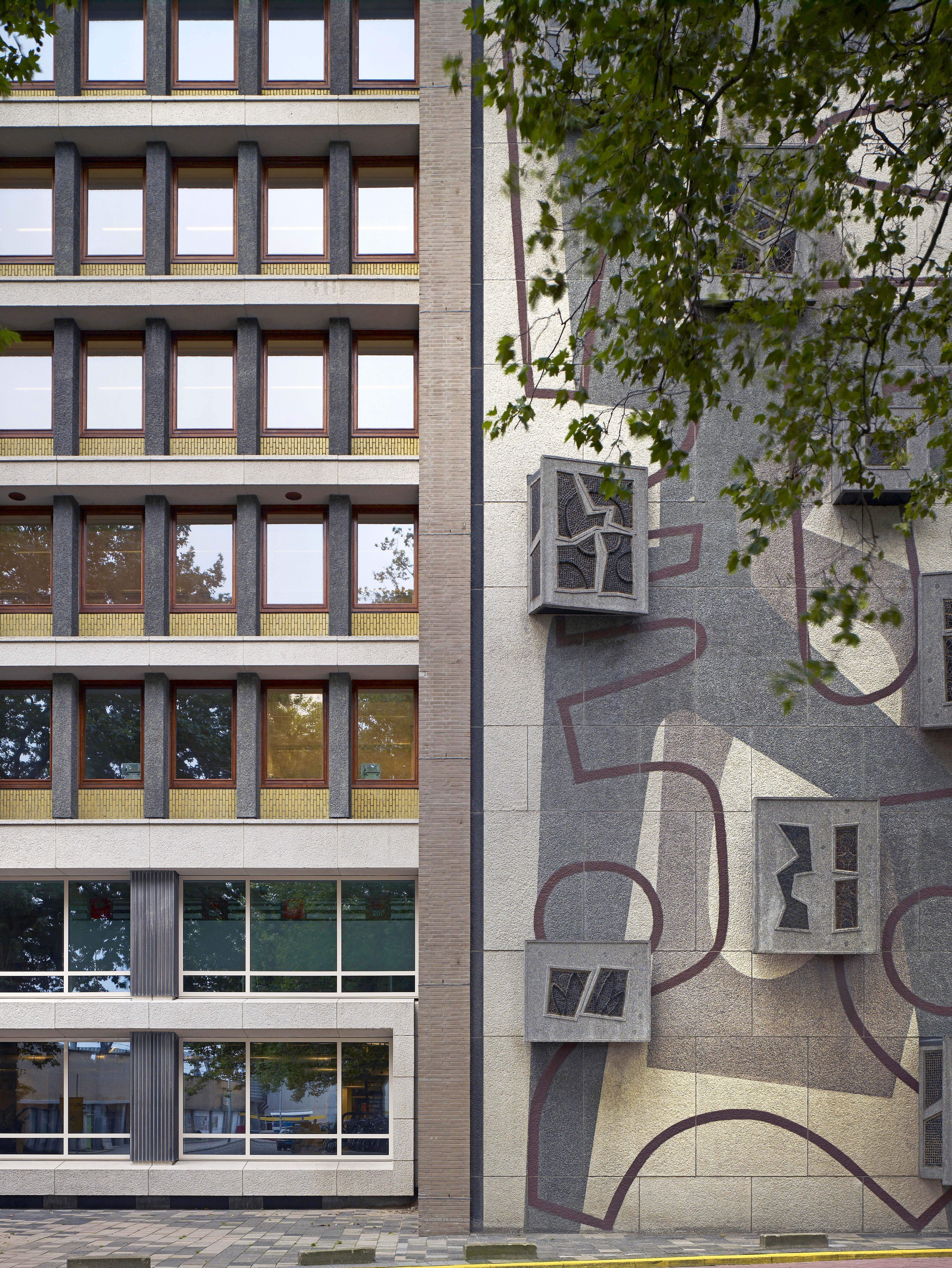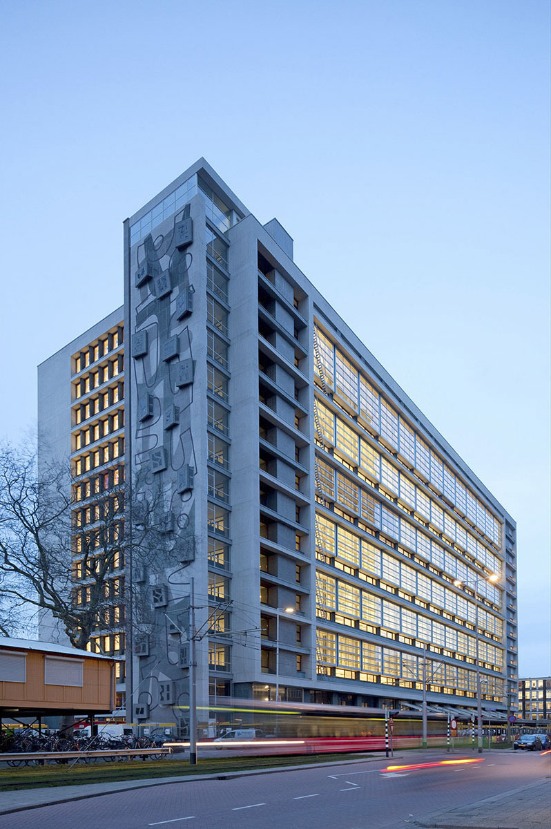 Central Post, the old and robust structure next to Central Station in Rotterdam, has been redeveloped into a contemporary and multifunctional office building to house the new creative industry. The project restored the exterior and added hanging floors to the interior, since the structure was built to carry more load than it ever held. The resulting building has a 90% increase in floor area and a Class A Energy Label. It is one of the five most sustainable buildings in the Netherlands.