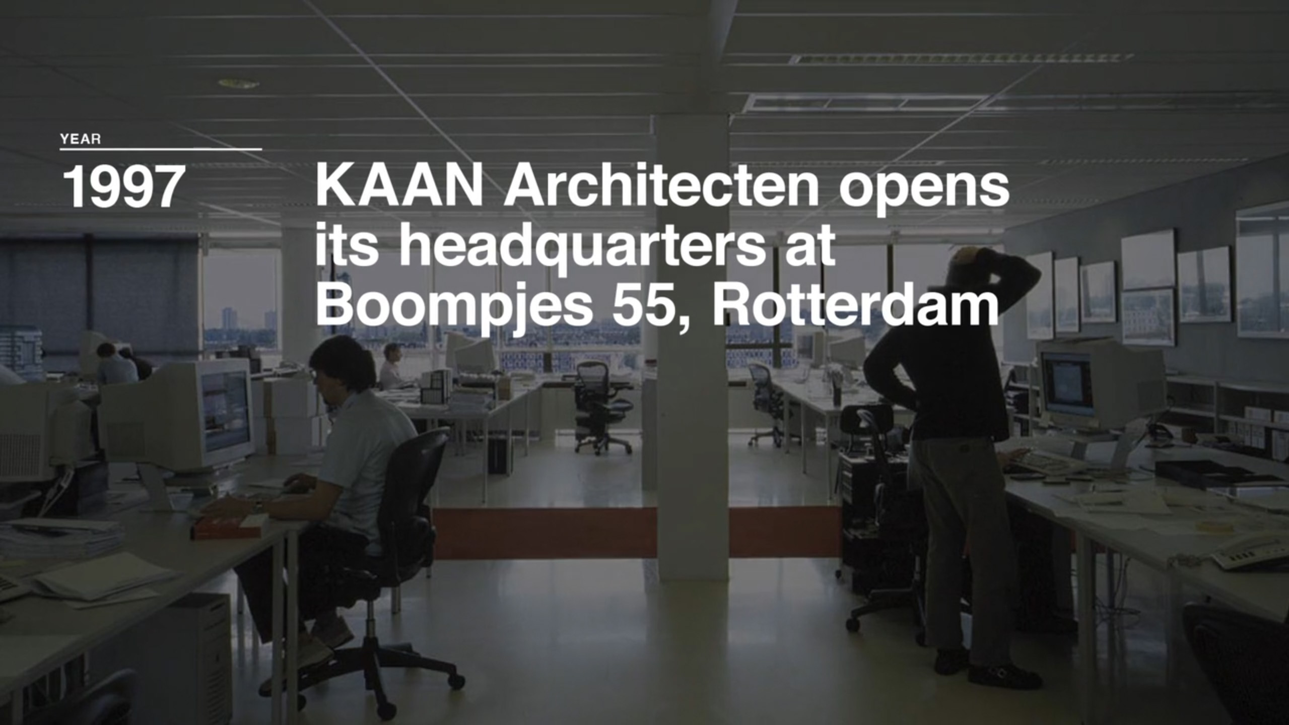 The office of KAAN Architecten is located in the heart of Rotterdam, on the Maas river, just a few steps from the iconic Erasmus Bridge. The firm transformed part of the former premises of De Nederlandsche Bank into their new open-plan headquarters, which encompasses more than 80 workspaces.