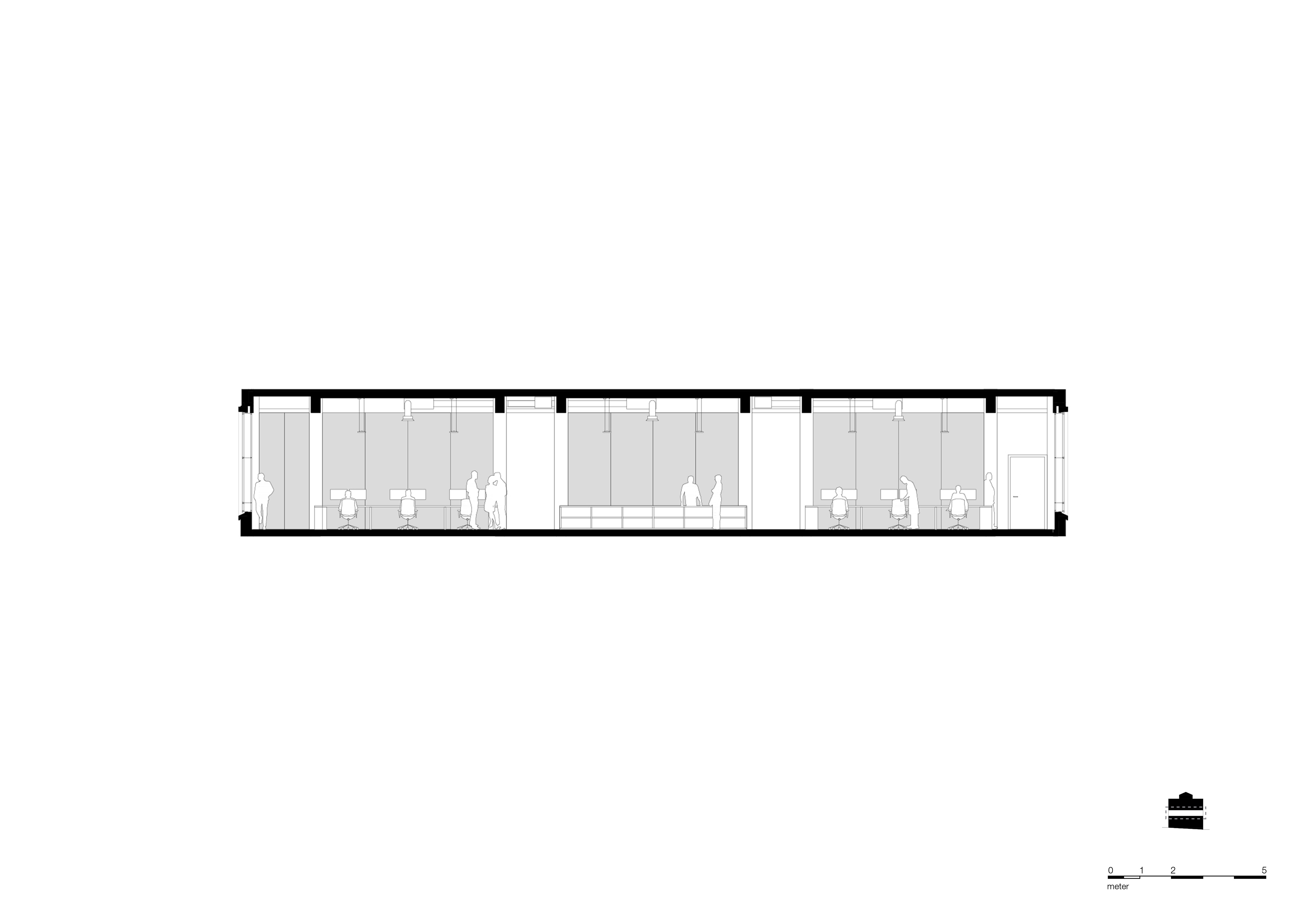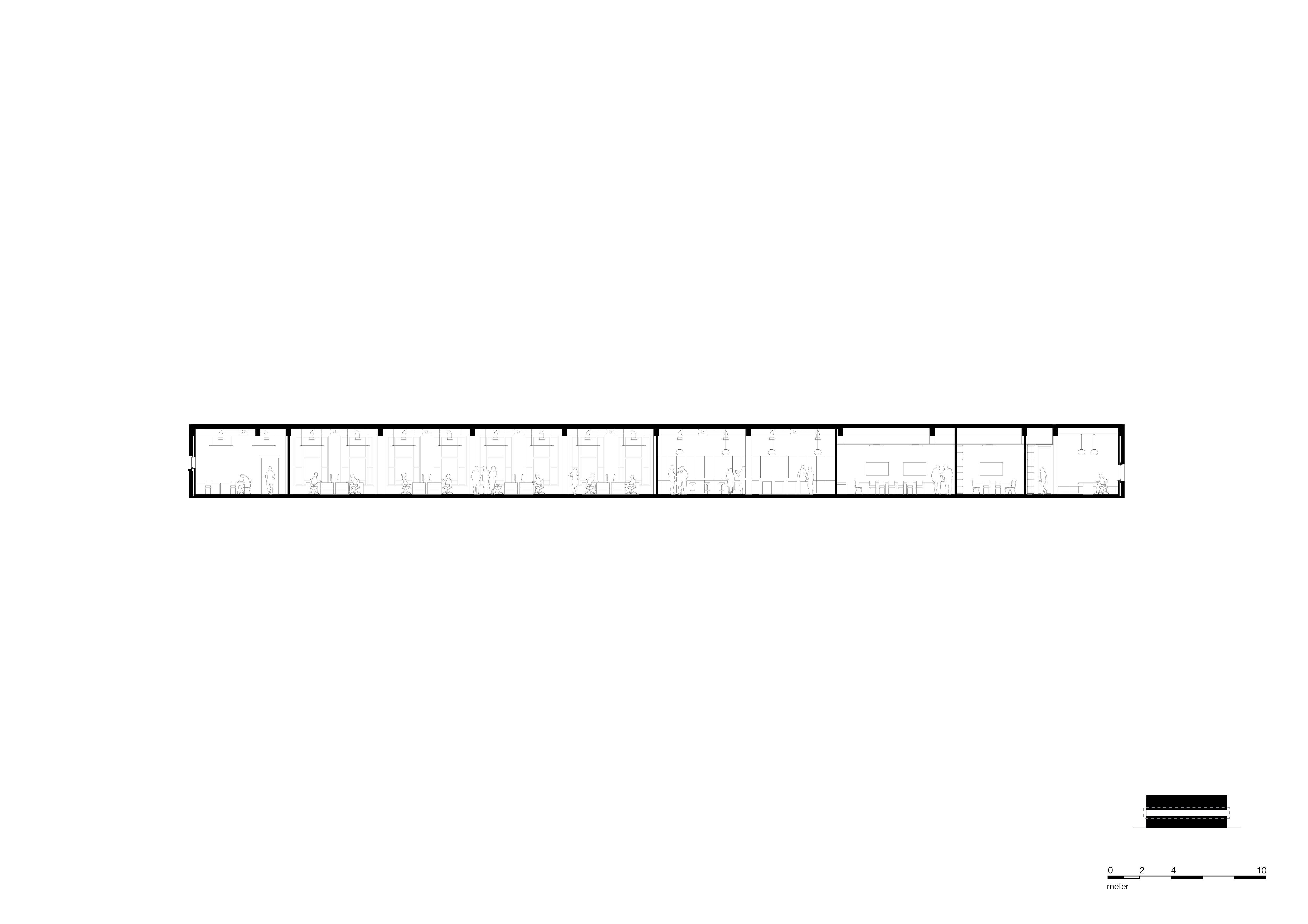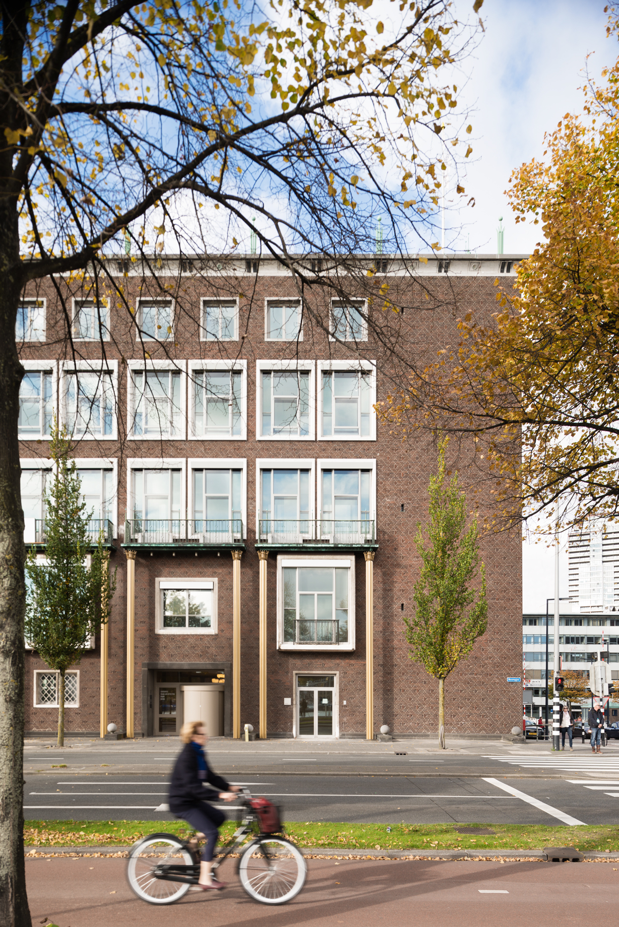 The space is on the piano nobile of a quintessential historical building originally designed by Prof. Henri Timo Zwiers in 1950-1955. The beating heart of the space is an extensive working area for architects. This space is flooded by daylight coming in from both sides and offers a unique view of the surrounding waterfront. The rectangular floor plan, with its clear proportions, is designed to effectively connect working, meeting, and leisure spaces through several long monumental corridors and passages, enhancing fluid interactions between employees, visitors, and partners.
