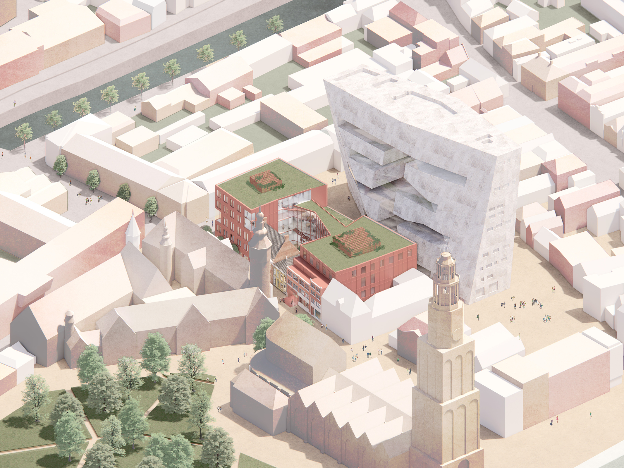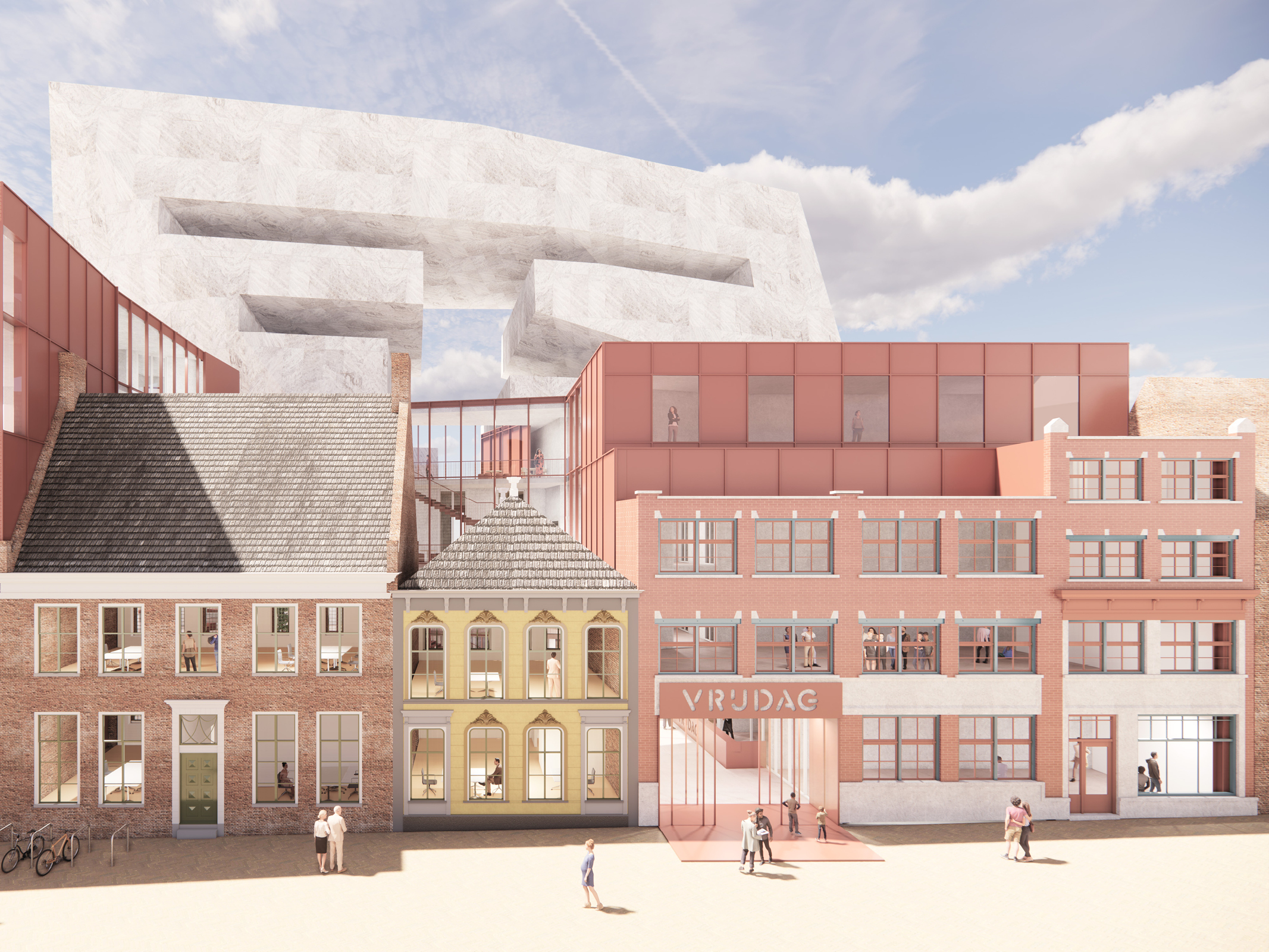 Located in the city centre of Groningen, this project aims to offer an urban living room for local residents as a place for creativity that is accessible, cosy, and full of entertainment. De Vrijdag Woonkamer (Dutch for ‘the living room’) replaces a large part of a 16th-century urban block, situated between historically significant monuments and the new urban landmark of the Groningen Forum.
