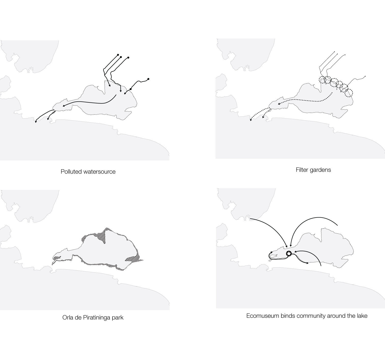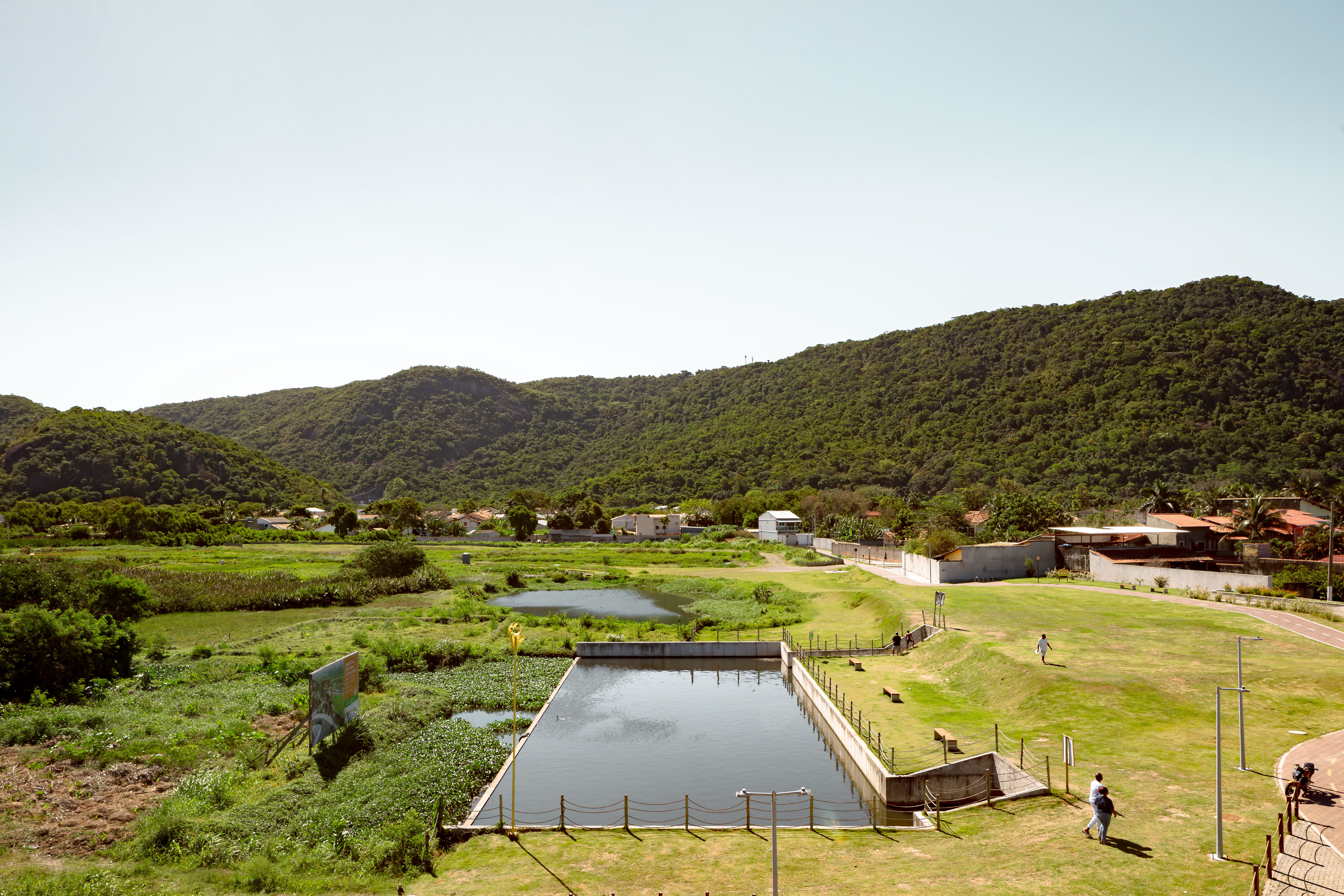 Parque Orla Piratininga Eco-museum is a part of a joint revitalisation project by KAAN Architecten, Phytorestore, and Embya aiming at a sustainable, long-term improvement of the Niterói’s Piratininga Lagoon. The wide-ranging approach is rigorous yet strategic; it addresses the lagoon and the facing neighbourhood with innovative and careful interventions. The extensive water filtering gardens are part of an overarching network of paths for pedestrians and bikes, lookouts, squares, sports courts, fishing piers, seating, and play areas, all interwoven with local vegetation.