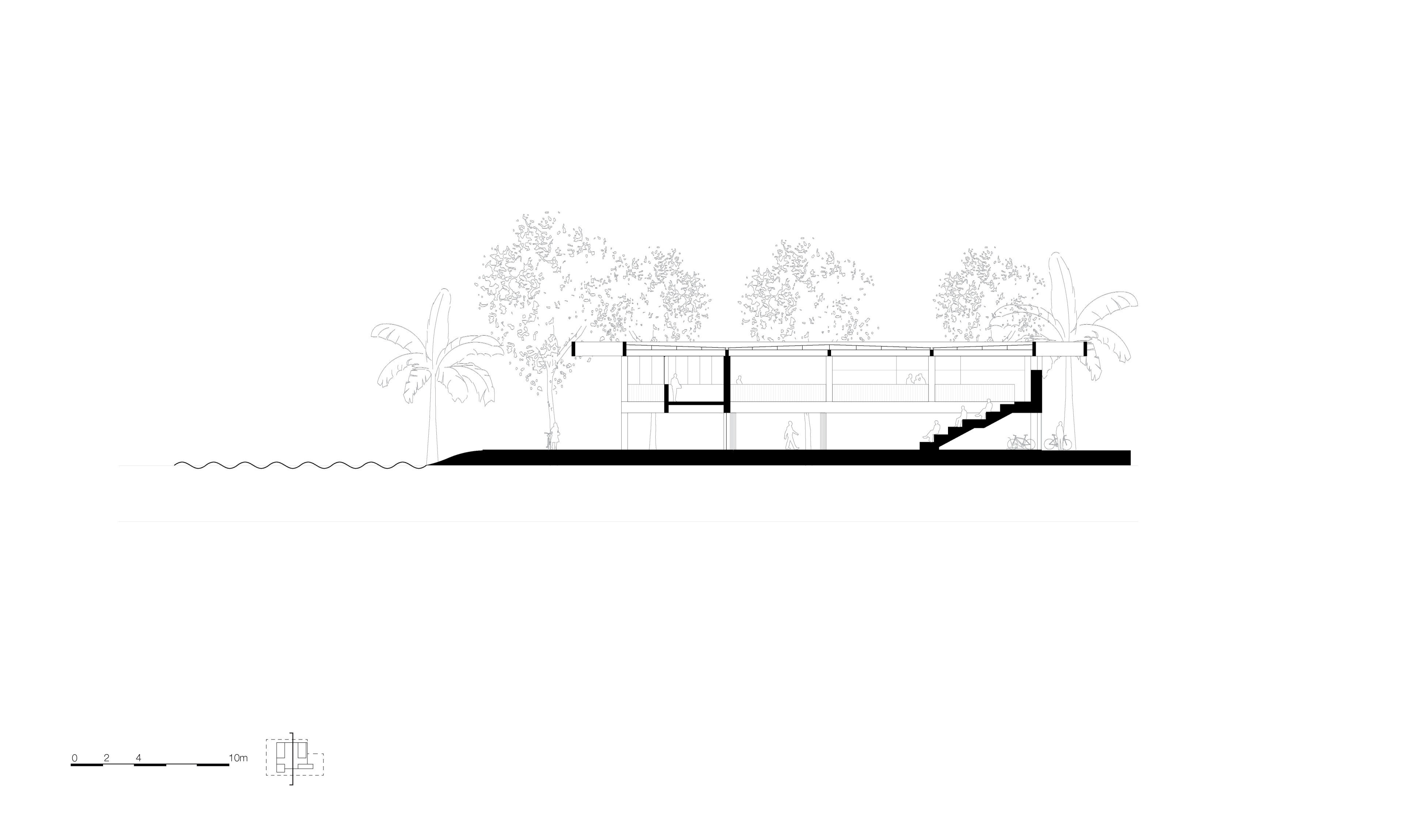 The Eco-Museum is a focal point of the redeveloped area and a tool for social inclusion that extends beyond the scope of the initial brief. The building is dedicated to the recovery and preservation of the lagoon and a place where this process can be constantly monitored by and actively taught to residents. Additionally, it provides a space for the fishermen’s community and various resident associations to gather and collaborate with municipal services. The building is conceived as a large, covered plaza with functional volumes placed in a way that enables seamless integration of the waterfront and the museum. In harmony with its lush environment, the locally sourced cumaru wood panelling of the Eco-museum completes the mixed structure of concrete columns and CLT slabs, contributing to its neutral carbon footprint.