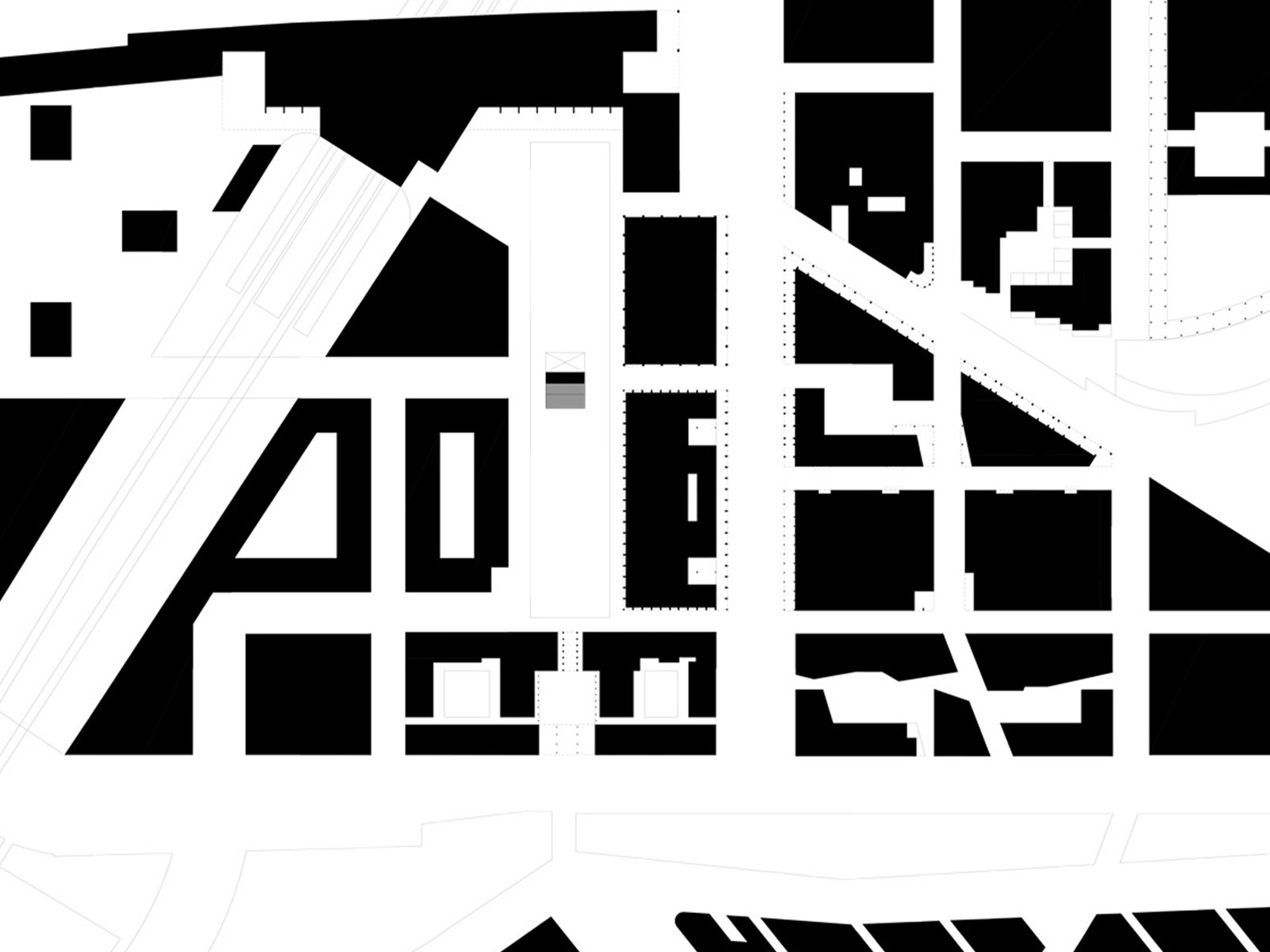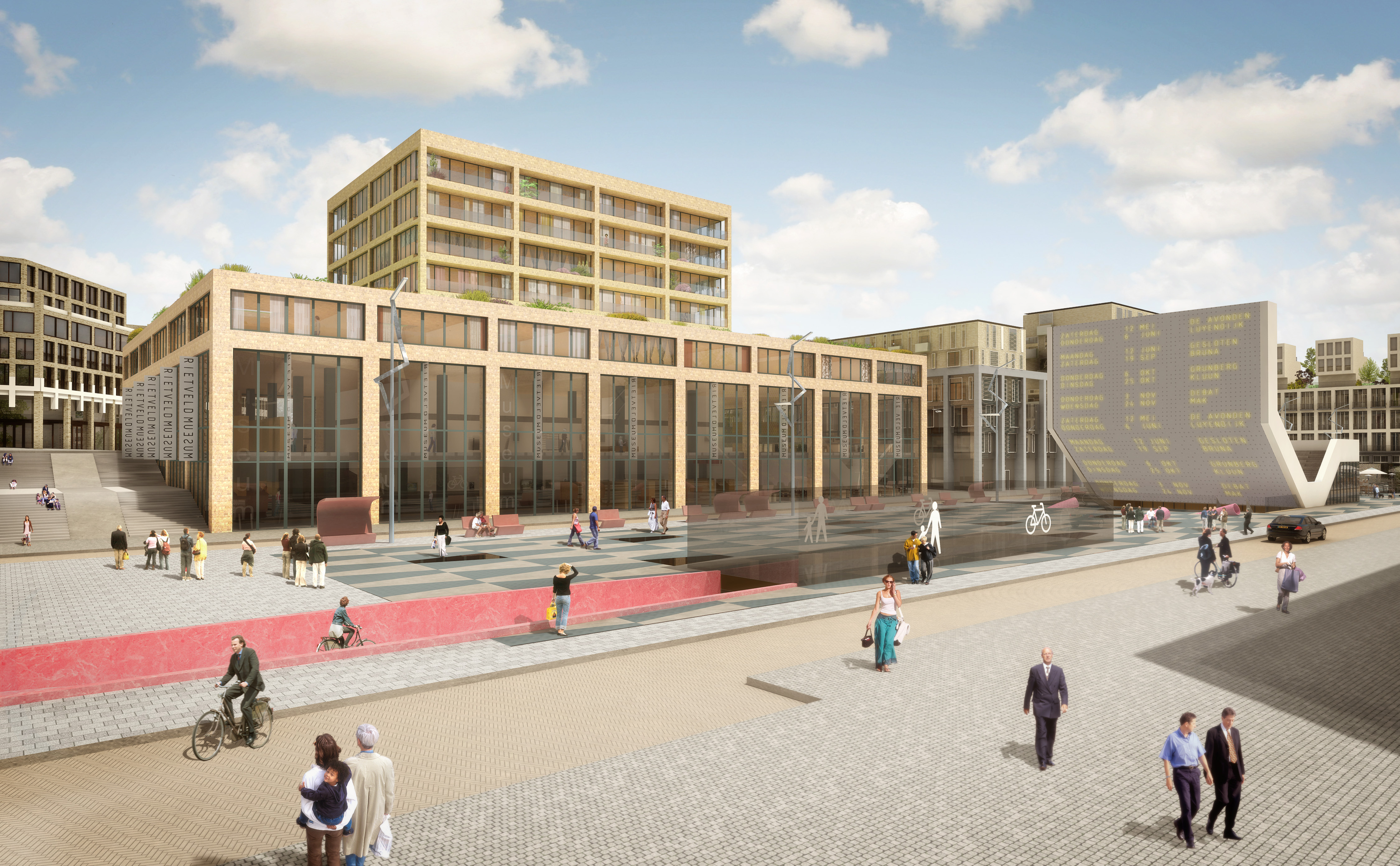 The proposal redevelops a city centre block for Leidsche Rijn, the expansion area for the city of Utrecht to house an additional 80,000 inhabitants by the end of 2025. At the intersection of the A2 motorway and a variety of public transport facilities, the new urban ground level was sloped to create free horizontal flows for pedestrians, to slow traffic, and to shorten vertical connections to expedition and parking areas.