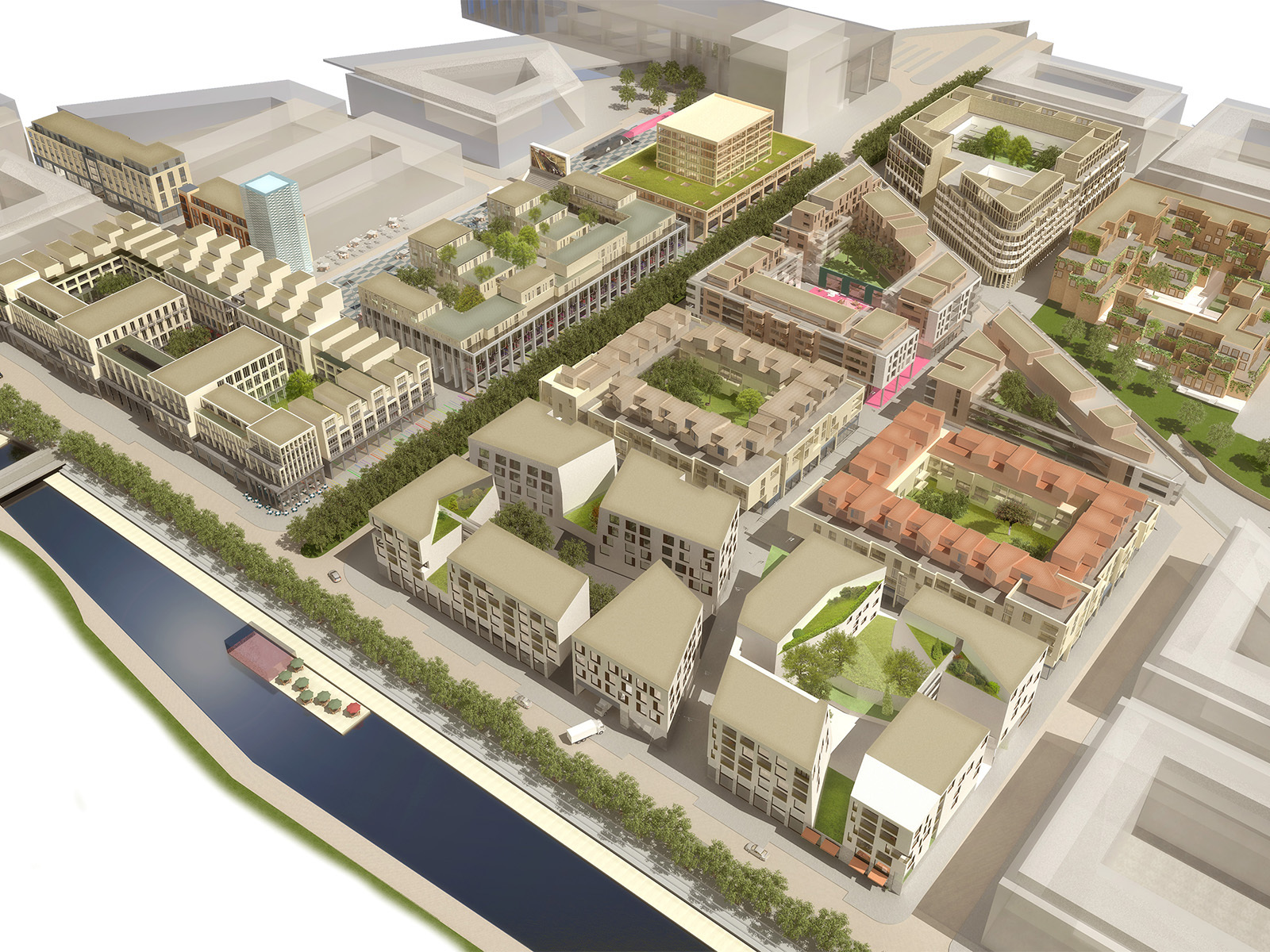 Situated close to the train station, Block D4 is the highest block, consisting of a fully occupied commercial ground floor and a variety of apartments on top of an inner court. Block E4 is anchored to the new urban street structure and to the park by a terraced landscape that forms a gradient transition to the park space. with façades coordinated with the other blocks. E4 is comprised of apartments and commercial units wrapped around a small courtyard, behind a façade designed to match the surrounding buildings which seamlessly integrates the block into the neighbourhood.