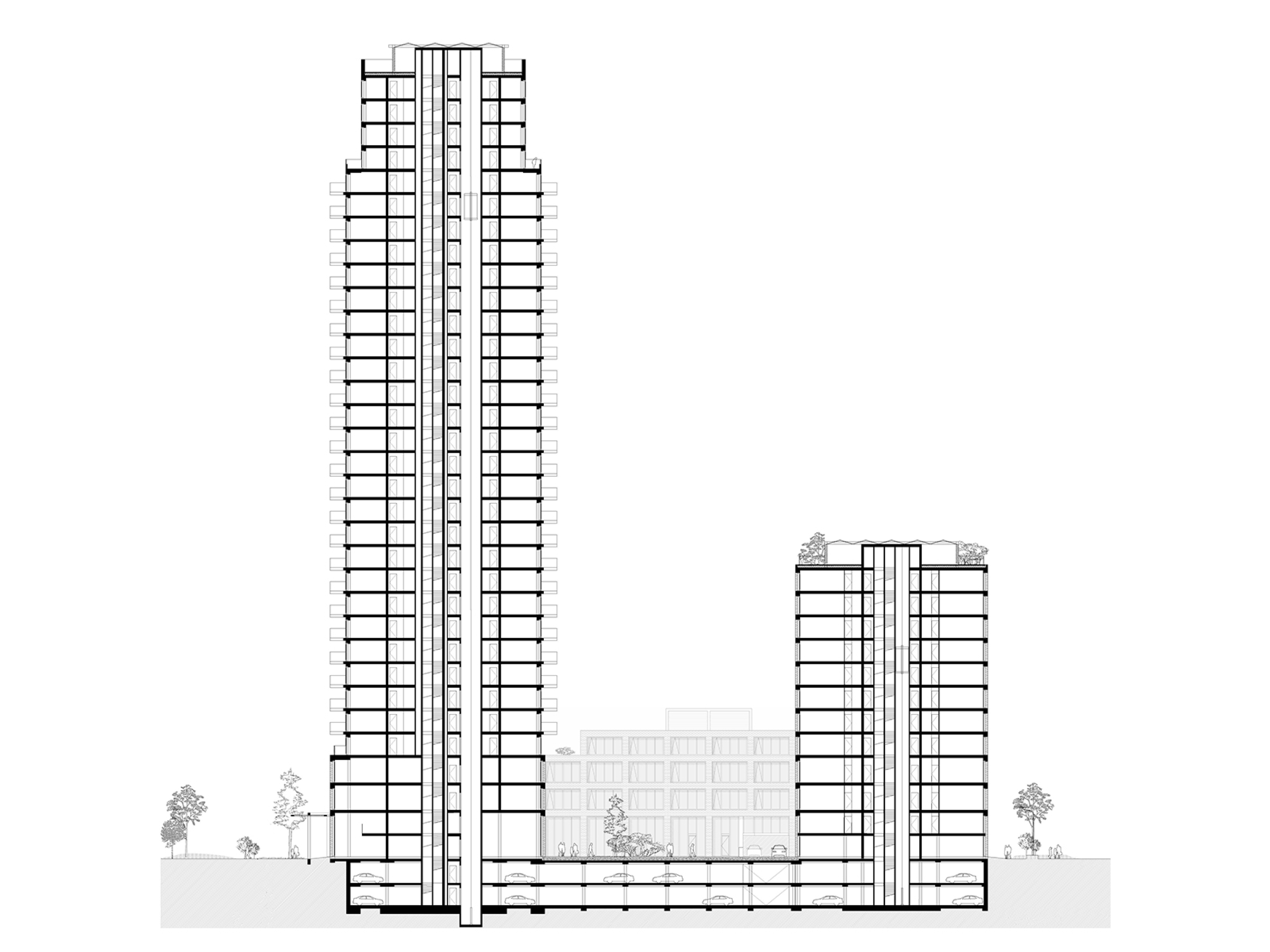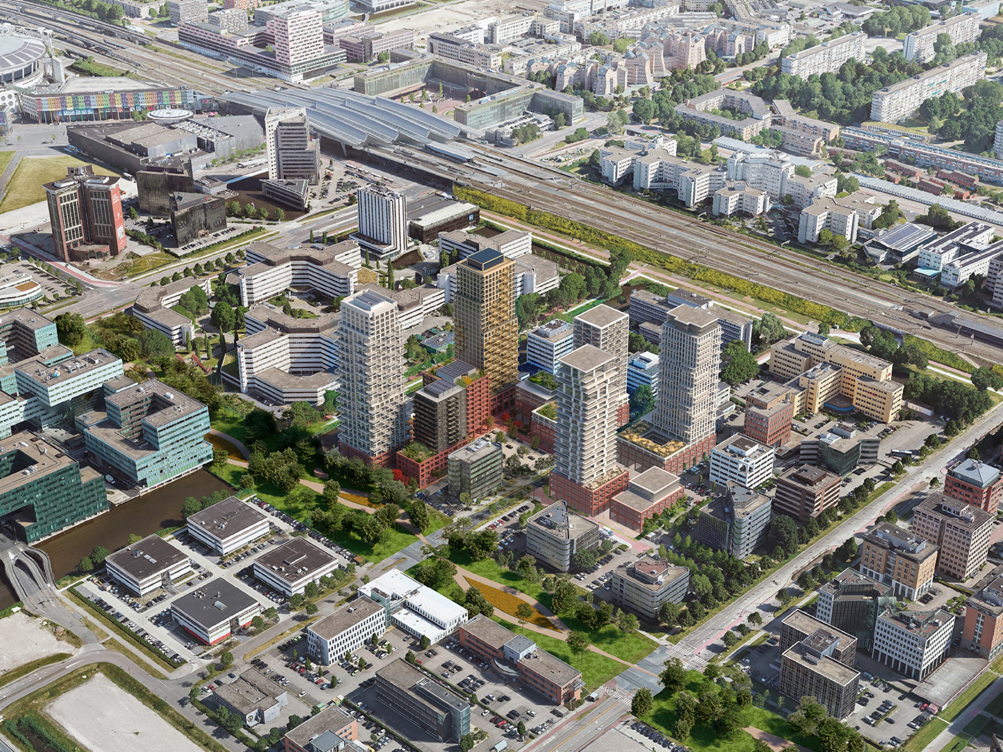 The vision, with an underlying strategy of density, is to create a space with urban dynamics, bringing comfort and achieving an alluring stratification. With a strong emphasis on residential atmosphere aside offices and commercial spaces, the programme enables considerable density, resulting in a green inner-city environment. By varying towers and lower building blocks, SPOT introduces a layer between the human scale, the buildings, and the wider environment.